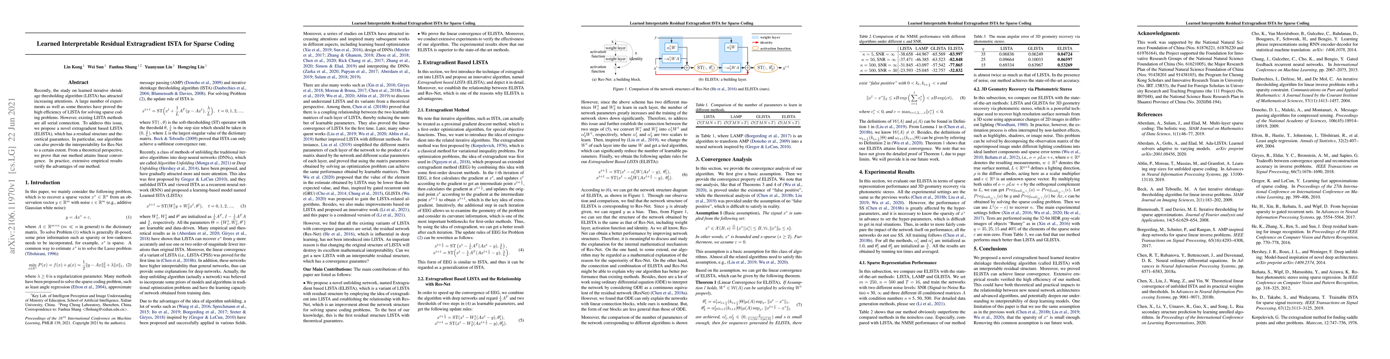 Recently, the study on learned iterative shrinkage thresholding algorithm (LISTA) has attracted increasing attentions. A large number of experiments as well as some theories have proved the high efficiency of LISTA for solving sparse coding problems. However, existing LISTA methods are all serial connection. To address this issue, we propose a novel extragradient based LISTA (ELISTA), which has a residual structure and theoretical guarantees. In particular, our algorithm can also provide the interpretability for Res-Net to a certain extent. From a theoretical perspective, we prove that our method attains linear convergence. In practice, extensive empirical results verify the advantages of our method.