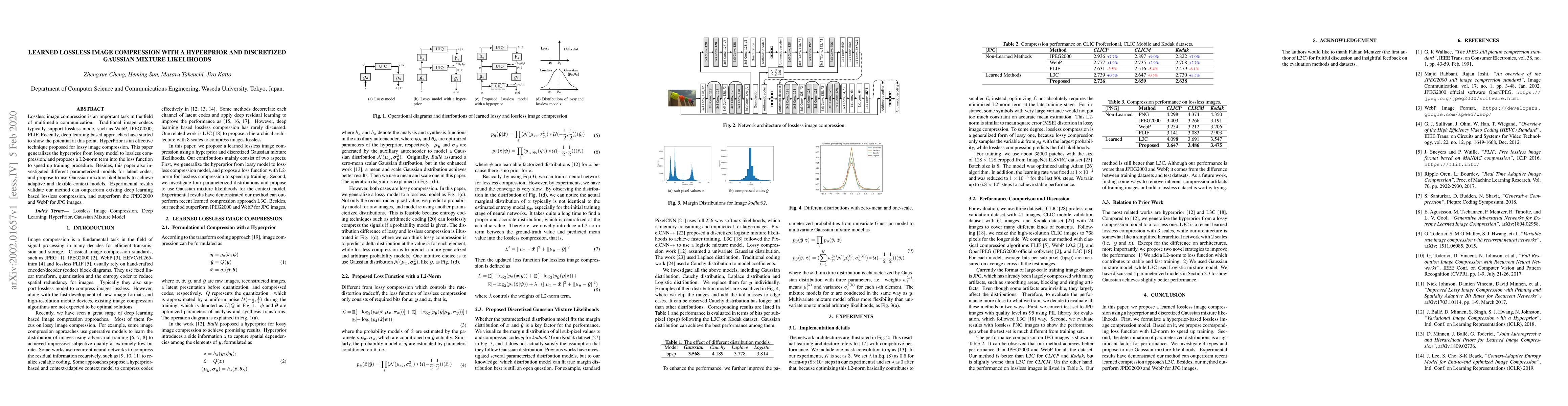 This paper proposes a novel deep learning approach for lossless image compression, generalizing the hyperprior technique from lossy to lossless compression and incorporating a L2-norm term for faster training. It employs Gaussian mixture likelihoods for adaptive context modeling, achieving superior performance compared to existing methods and traditional codecs like JPEG2000 and WebP.