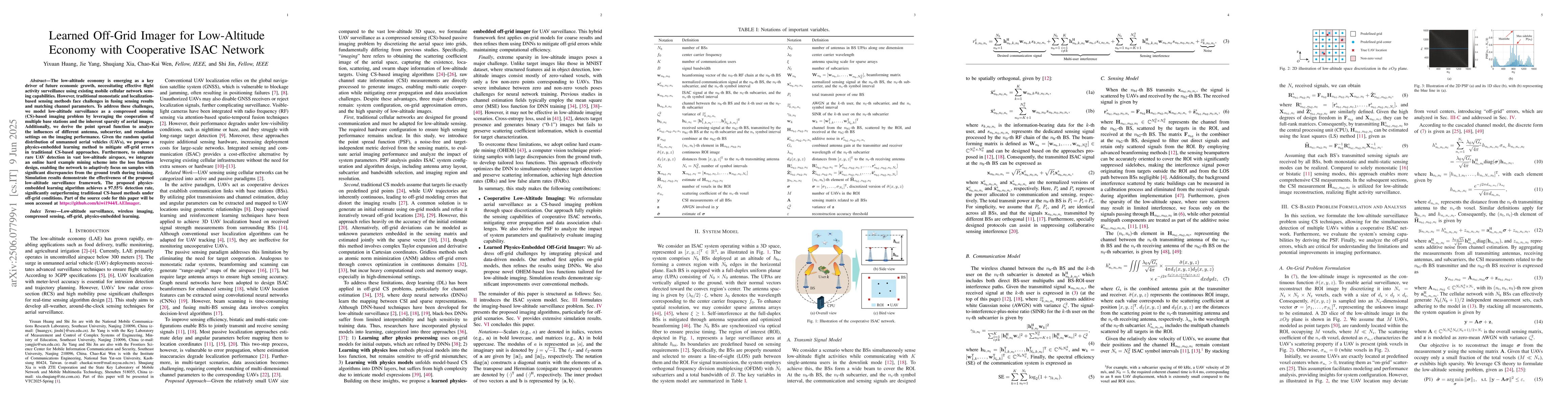 The low-altitude economy is emerging as a key driver of future economic growth, necessitating effective flight activity surveillance using existing mobile cellular network sensing capabilities. However, traditional monostatic and localizationbased sensing methods face challenges in fusing sensing results and matching channel parameters. To address these challenges, we model low-altitude surveillance as a compressed sensing (CS)-based imaging problem by leveraging the cooperation of multiple base stations and the inherent sparsity of aerial images. Additionally, we derive the point spread function to analyze the influences of different antenna, subcarrier, and resolution settings on the imaging performance. Given the random spatial distribution of unmanned aerial vehicles (UAVs), we propose a physics-embedded learning method to mitigate off-grid errors in traditional CS-based approaches. Furthermore, to enhance rare UAV detection in vast low-altitude airspace, we integrate an online hard example mining scheme into the loss function design, enabling the network to adaptively focus on samples with significant discrepancies from the ground truth during training. Simulation results demonstrate the effectiveness of the proposed low-altitude surveillance framework. The proposed physicsembedded learning algorithm achieves a 97.55% detection rate, significantly outperforming traditional CS-based methods under off-grid conditions. Part of the source code for this paper will be soon accessed at https://github.com/kiwi1944/LAEImager.