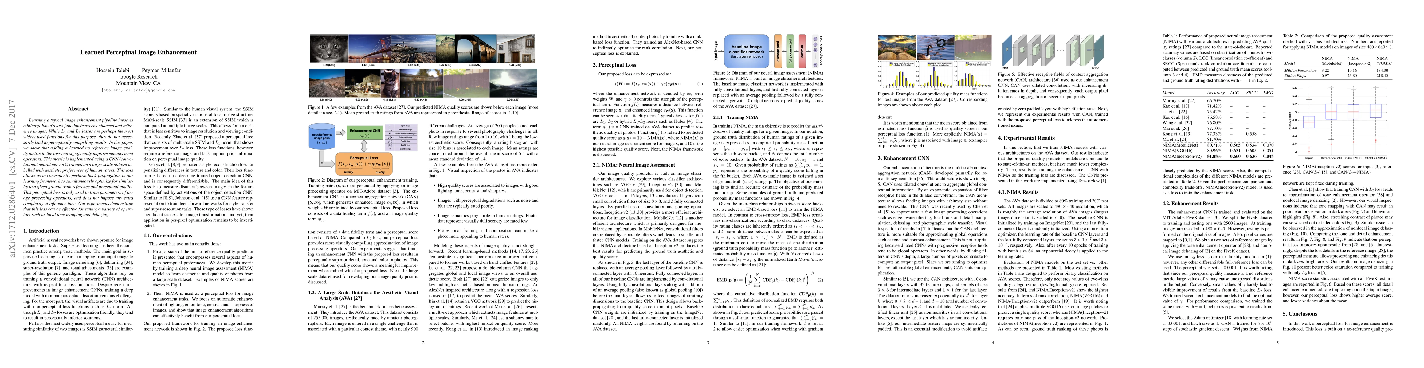 This research paper explores enhancing image quality by incorporating a learned perceptual metric into the training process. The authors propose using a CNN trained on human aesthetic preferences to optimize image enhancement operators, achieving better perceptual quality without adding complexity during inference. This approach is shown to improve various image processing tasks like tone mapping and dehazing.