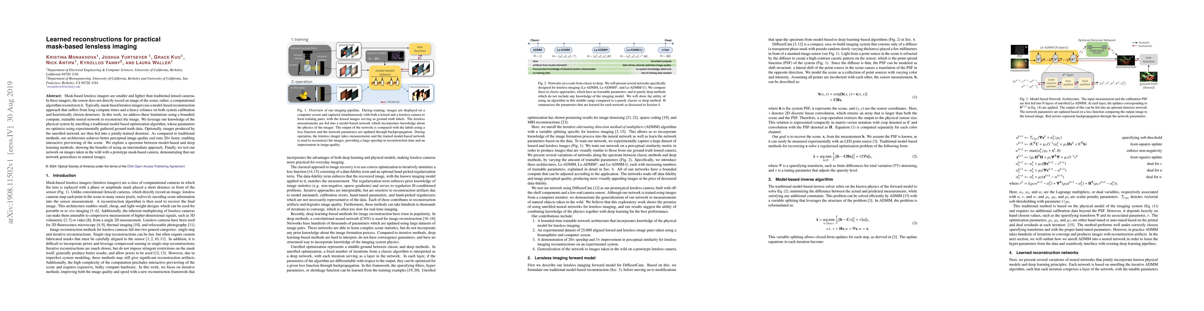 This paper proposes a neural network-based reconstruction method for mask-based lensless imagers, achieving faster computation and better image quality compared to traditional model-based approaches. The network is trained using experimentally gathered data, and optionally, a denoiser is jointly trained to further enhance image quality.