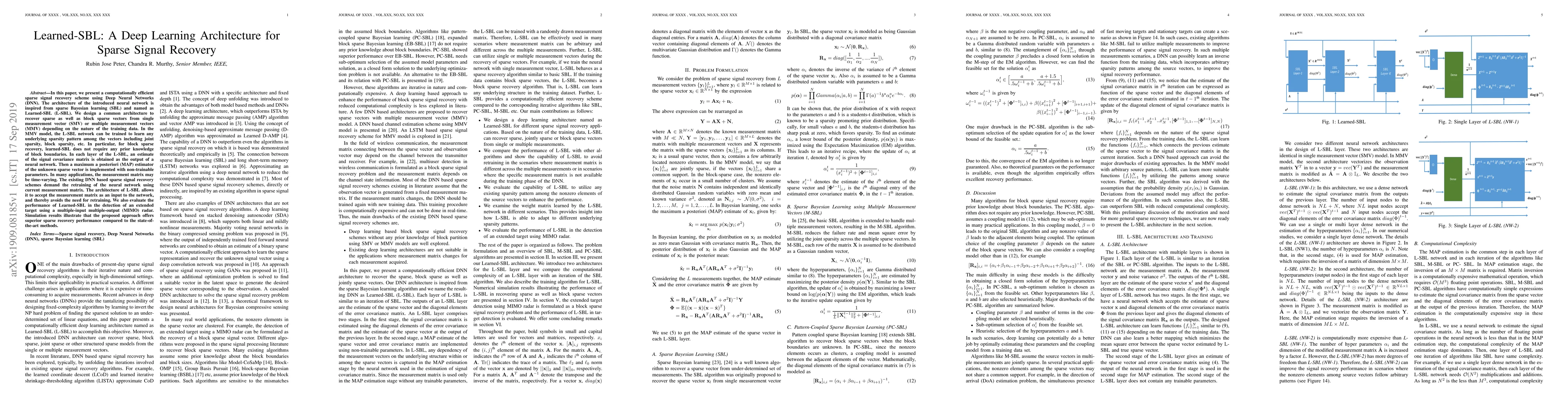This paper introduces Learned-SBL, a deep learning architecture inspired by sparse Bayesian learning for efficient sparse signal recovery. Unlike existing DNN methods, Learned-SBL can adapt to time-varying measurement matrices without retraining, demonstrating superior performance in sparse recovery and MIMO radar target detection.