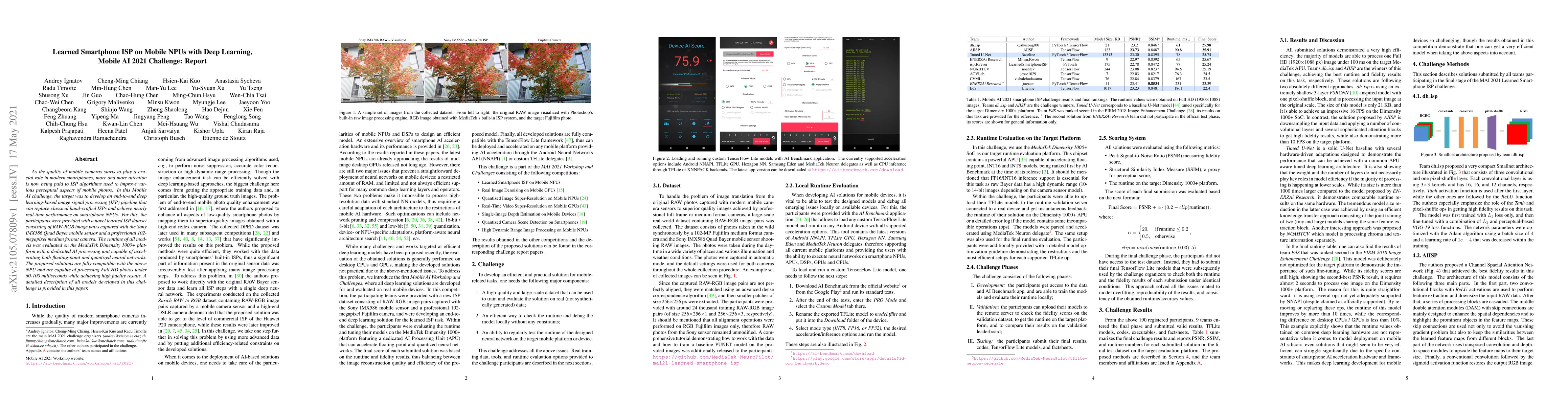 This paper presents deep learning-based image signal processing (ISP) solutions developed for mobile NPUs to replace traditional hand-crafted ISPs, achieving high-fidelity results and near real-time performance on the MediaTek Dimensity 1000+ platform. The models processed Full HD photos in 60-100 milliseconds using a novel dataset of RAW-RGB image pairs.