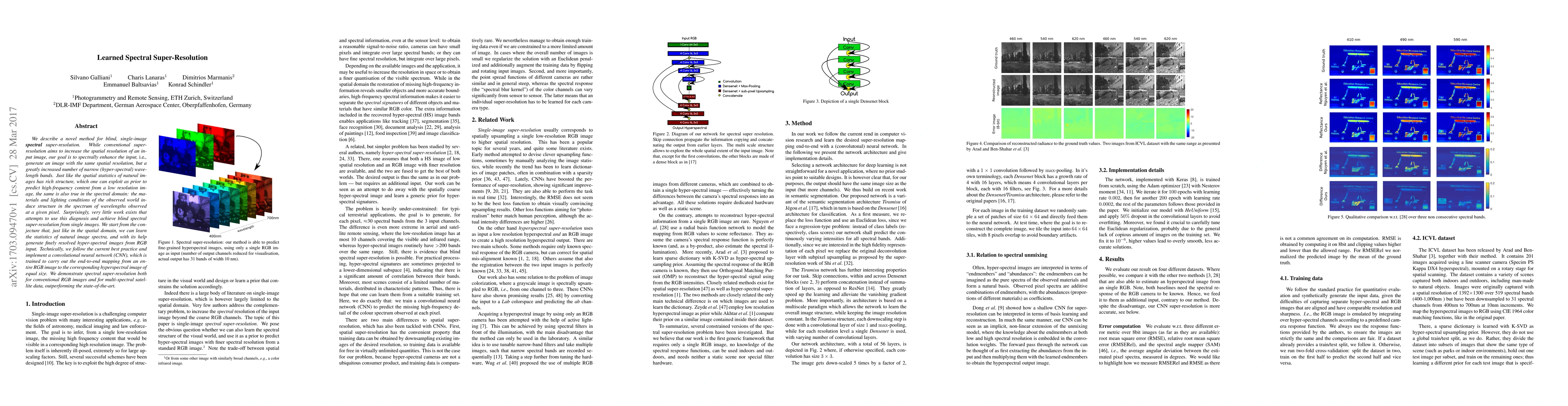 This paper introduces a novel convolutional neural network (CNN) method for blind, single-image spectral super-resolution, aiming to enhance the spectral resolution of input images by generating hyper-spectral images with increased narrow wavelength bands. The method leverages learned statistics of natural image spectra to achieve superior results compared to state-of-the-art techniques.