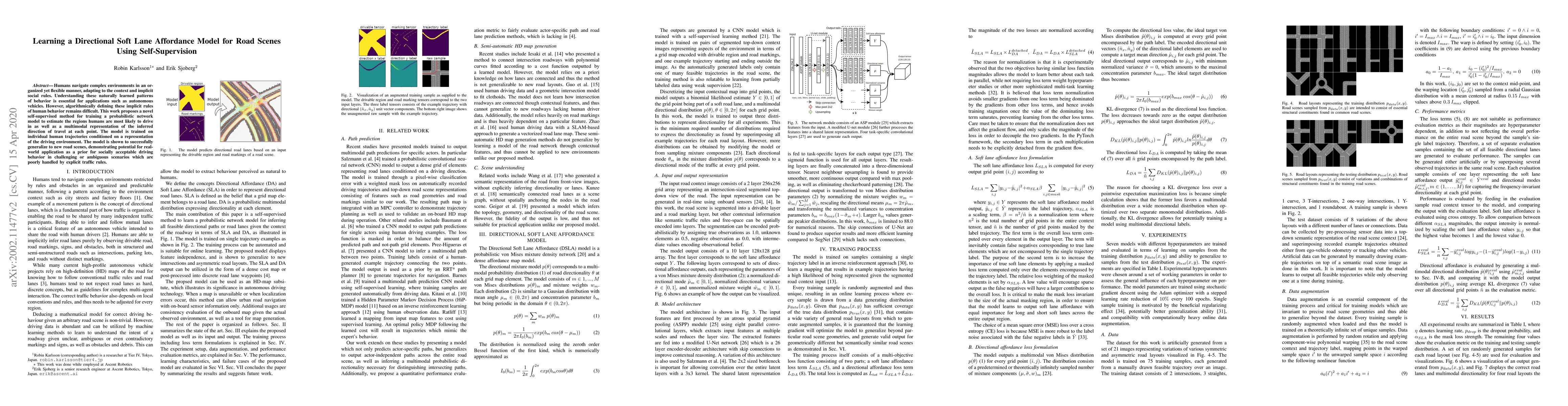 This paper proposes a self-supervised method to train a probabilistic network model that estimates likely driving regions and inferred travel directions from human trajectories. The model generalizes to new road scenes, offering potential for autonomous vehicles to navigate ambiguous situations based on socially acceptable driving behavior.
