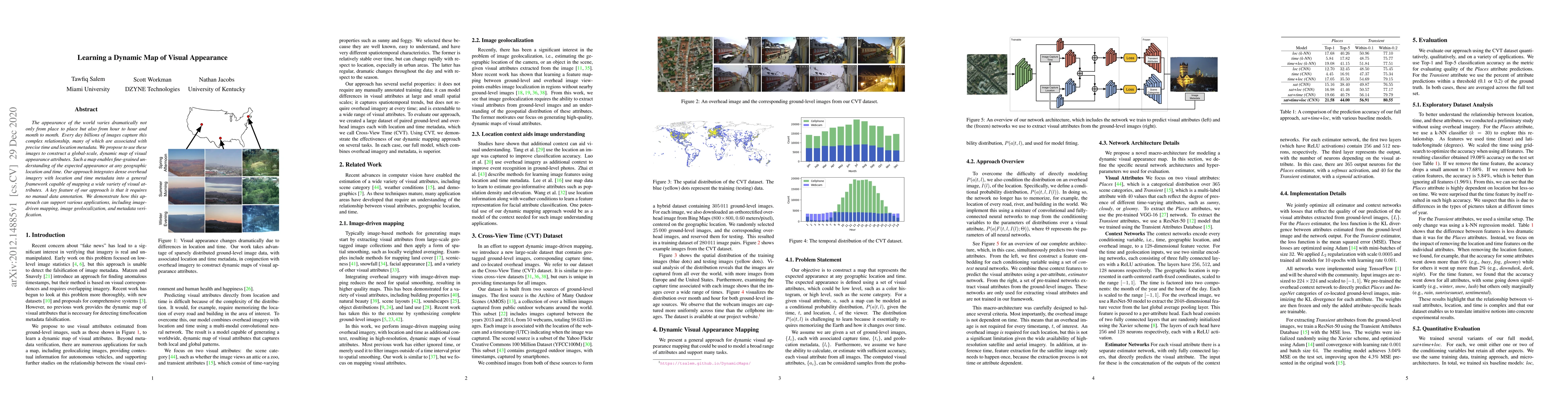 The appearance of the world varies dramatically not only from place to place but also from hour to hour and month to month. Every day billions of images capture this complex relationship, many of which are associated with precise time and location metadata. We propose to use these images to construct a global-scale, dynamic map of visual appearance attributes. Such a map enables fine-grained understanding of the expected appearance at any geographic location and time. Our approach integrates dense overhead imagery with location and time metadata into a general framework capable of mapping a wide variety of visual attributes. A key feature of our approach is that it requires no manual data annotation. We demonstrate how this approach can support various applications, including image-driven mapping, image geolocalization, and metadata verification.