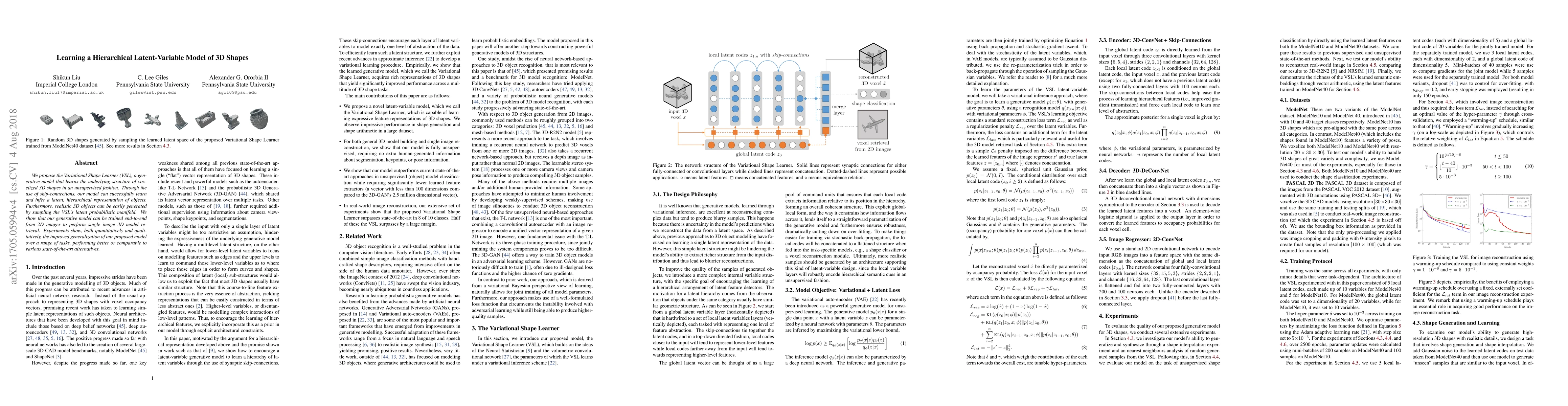 The Variational Shape Learner (VSL) is a generative model that learns hierarchical latent representations of 3D shapes and can generate realistic objects, outperforming state-of-the-art alternatives in various tasks.