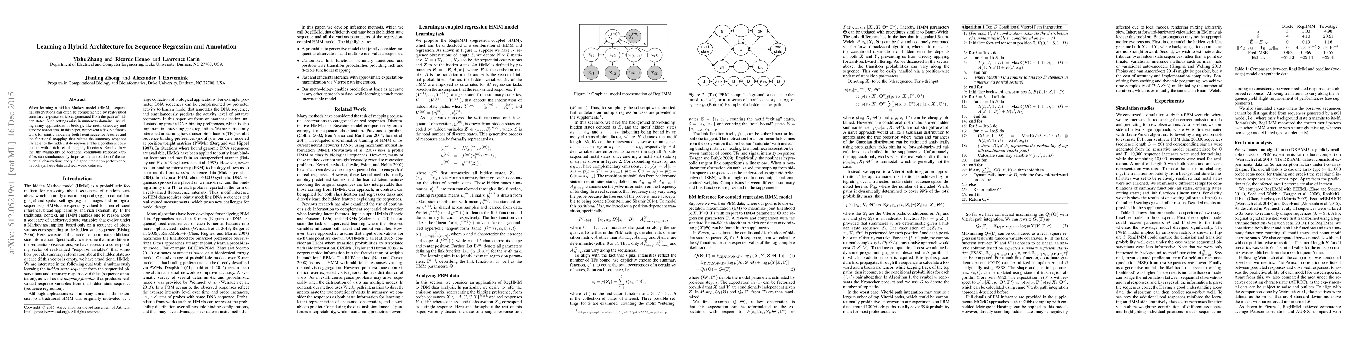 When learning a hidden Markov model (HMM), sequen- tial observations can often be complemented by real-valued summary response variables generated from the path of hid- den states. Such settings arise in numerous domains, includ- ing many applications in biology, like motif discovery and genome annotation. In this paper, we present a flexible frame- work for jointly modeling both latent sequence features and the functional mapping that relates the summary response variables to the hidden state sequence. The algorithm is com- patible with a rich set of mapping functions. Results show that the availability of additional continuous response vari- ables can simultaneously improve the annotation of the se- quential observations and yield good prediction performance in both synthetic data and real-world datasets.