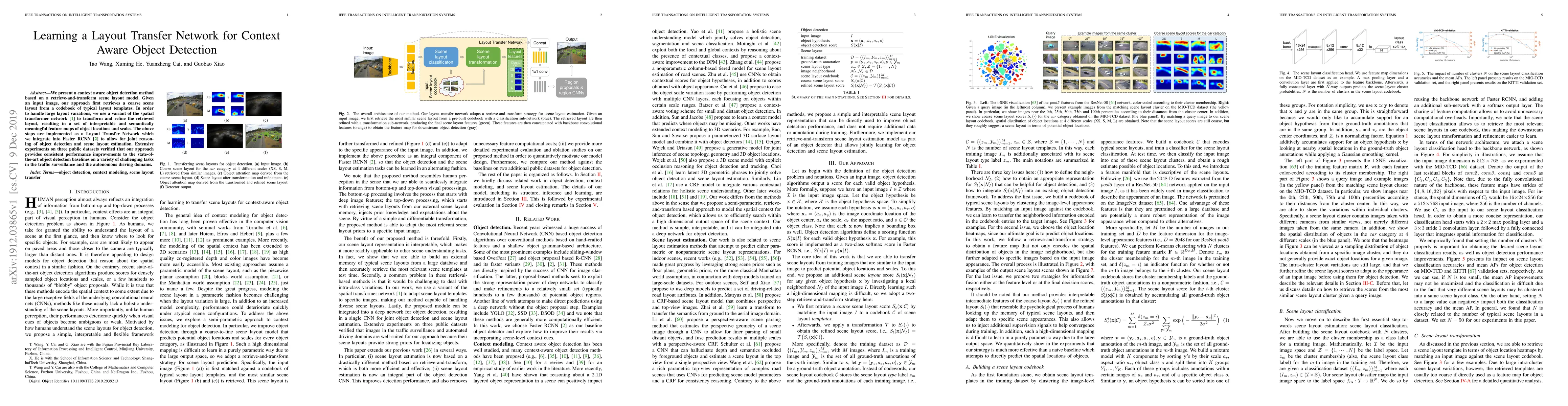 This paper proposes a context-aware object detection method using a Layout Transfer Network integrated into Faster RCNN to combine scene layout estimation with object detection, achieving better performance on traffic surveillance and autonomous driving tasks. The method retrieves and refines scene layouts using a spatial transformer network for improved interpretability and accuracy.