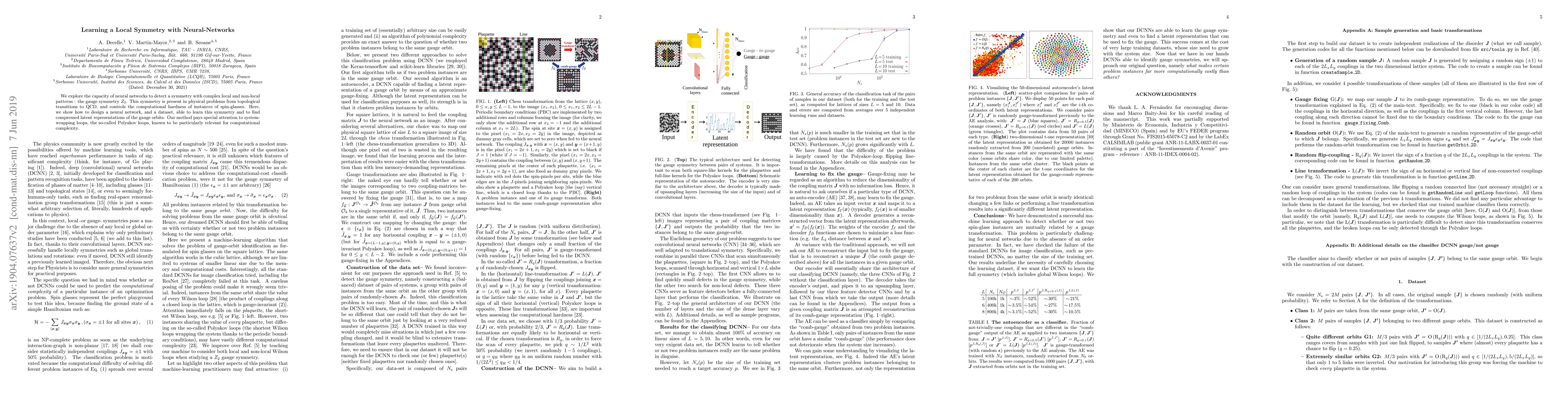 We explore the capacity of neural networks to detect a symmetry with complex local and non-local patterns : the gauge symmetry Z 2 . This symmetry is present in physical problems from topological transitions to QCD, and controls the computational hardness of instances of spin-glasses. Here, we show how to design a neural network, and a dataset, able to learn this symmetry and to find compressed latent representations of the gauge orbits. Our method pays special attention to system-wrapping loops, the so-called Polyakov loops, known to be particularly relevant for computational complexity.