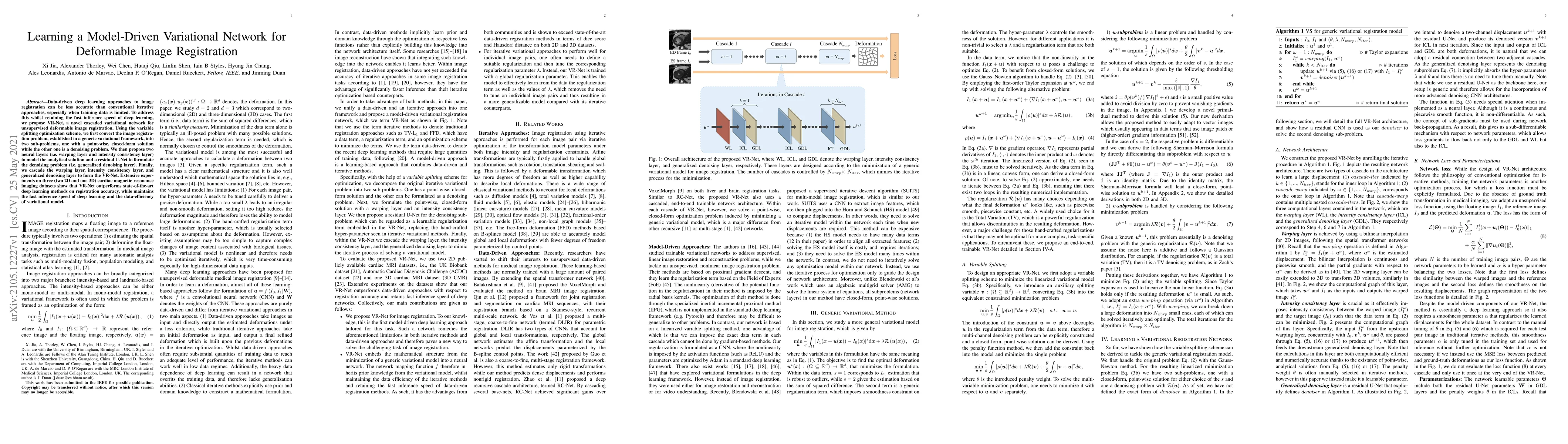 This paper proposes VR-Net, a cascaded variational network for unsupervised deformable image registration, combining analytical solutions and deep learning to improve accuracy and maintain fast inference speeds. Experiments on cardiac MRI datasets demonstrate VR-Net's superior registration accuracy compared to state-of-the-art deep learning methods.