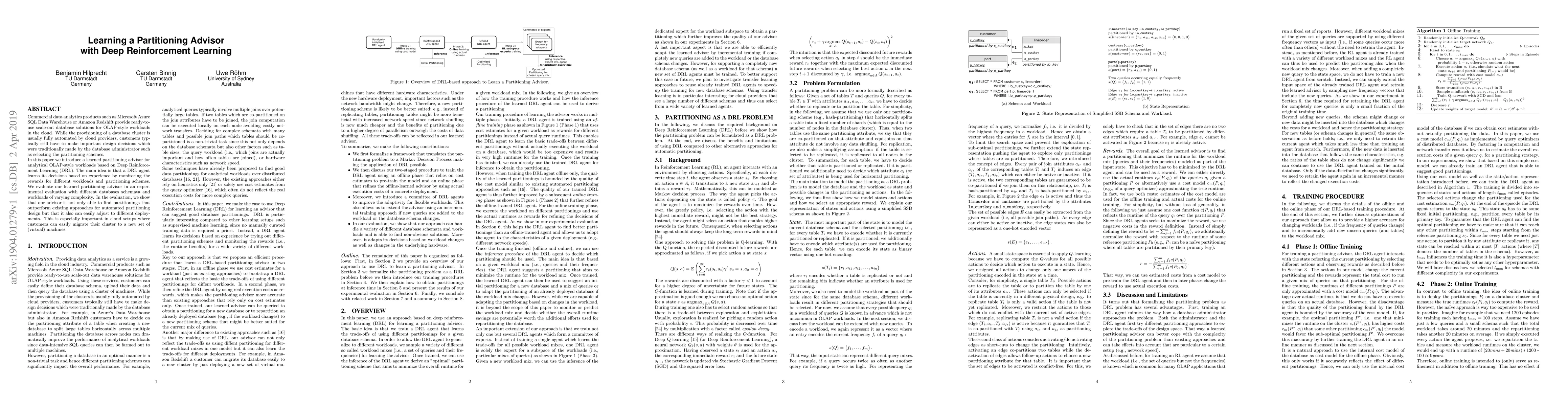 This paper proposes a Deep Reinforcement Learning (DRL) agent to automate the selection of partitioning schemes for analytical OLAP-style workloads in cloud databases. The DRL agent learns optimal partitioning strategies by monitoring performance rewards, outperforming existing automated methods and adapting to different deployment environments.