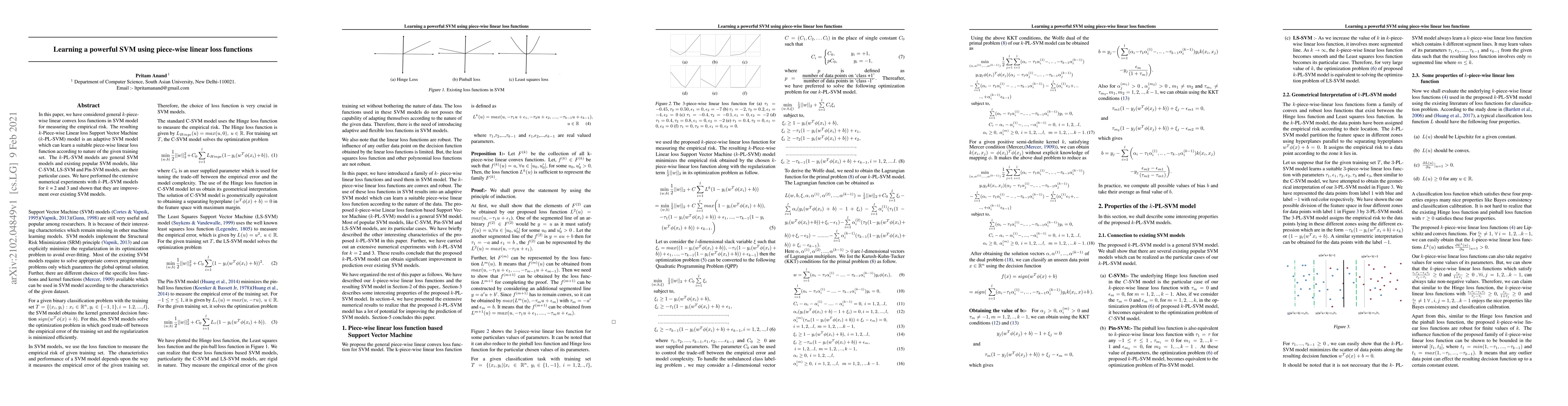 This paper proposes a k-Piece-wise Linear loss Support Vector Machine (k-PL-SVM) model that uses general k-piece-wise linear convex loss functions to adapt to the training data. The k-PL-SVM model outperforms existing SVM models like C-SVM, LS-SVM, and Pin-SVM in numerical experiments for k=2 and k=3.