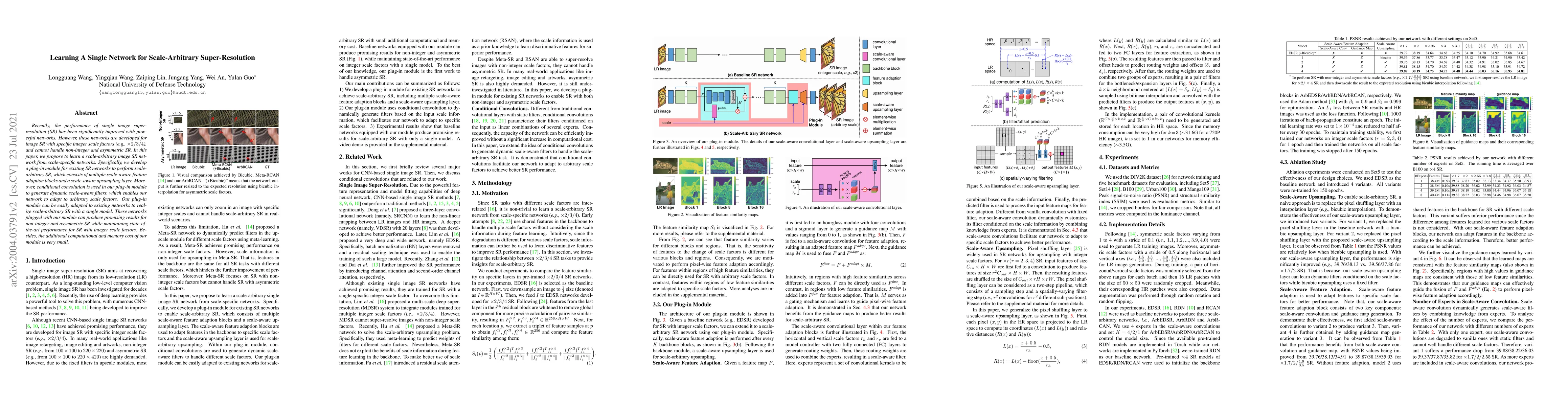This paper proposes a plug-in module for existing single image super-resolution networks to enable scale-arbitrary super-resolution, including non-integer and asymmetric scaling. The module incorporates scale-aware feature adaption blocks and a scale-aware upsampling layer, along with a knowledge transfer paradigm, achieving state-of-the-art performance with minimal additional computational cost.