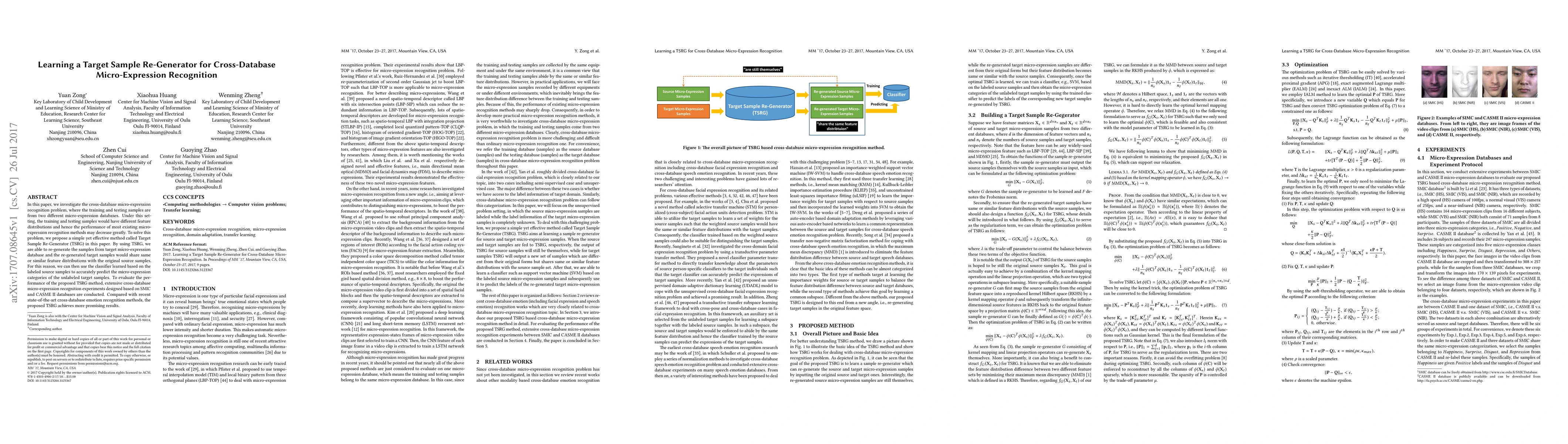 This paper proposes a Target Sample Re-Generator (TSRG) to address the cross-database micro-expression recognition problem, where training and testing samples come from different databases. TSRG re-generates target samples to match the feature distributions of source samples, enabling accurate micro-expression classification across databases.