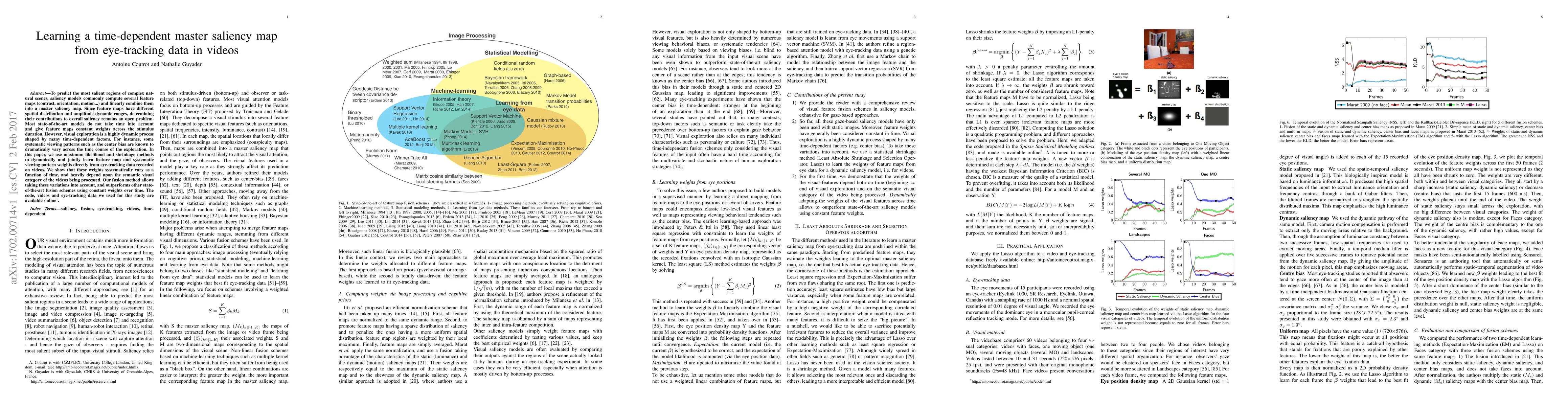 To predict the most salient regions of complex natural scenes, saliency models commonly compute several feature maps (contrast, orientation, motion...) and linearly combine them into a master saliency map. Since feature maps have different spatial distribution and amplitude dynamic ranges, determining their contributions to overall saliency remains an open problem. Most state-of-the-art models do not take time into account and give feature maps constant weights across the stimulus duration. However, visual exploration is a highly dynamic process shaped by many time-dependent factors. For instance, some systematic viewing patterns such as the center bias are known to dramatically vary across the time course of the exploration. In this paper, we use maximum likelihood and shrinkage methods to dynamically and jointly learn feature map and systematic viewing pattern weights directly from eye-tracking data recorded on videos. We show that these weights systematically vary as a function of time, and heavily depend upon the semantic visual category of the videos being processed. Our fusion method allows taking these variations into account, and outperforms other state-of-the-art fusion schemes using constant weights over time. The code, videos and eye-tracking data we used for this study are available online: http://antoinecoutrot.magix.net/public/research.html