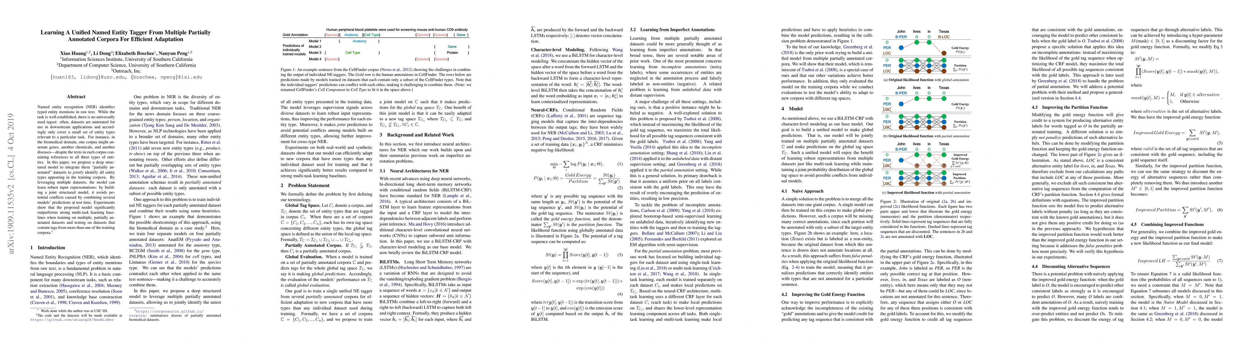 The paper presents a unified deep structured model for NER that integrates multiple partially annotated corpora, learning robust input representations and avoiding conflicts by building a joint model.