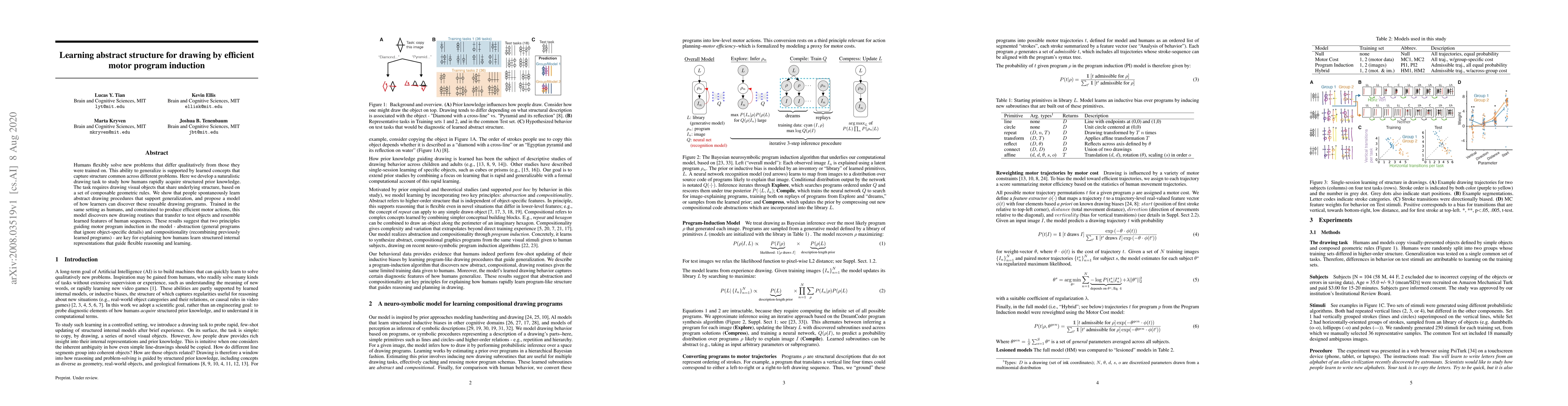 Humans learn abstract drawing procedures that generalize to new objects through efficient motor program induction, leveraging abstraction and compositionality principles.