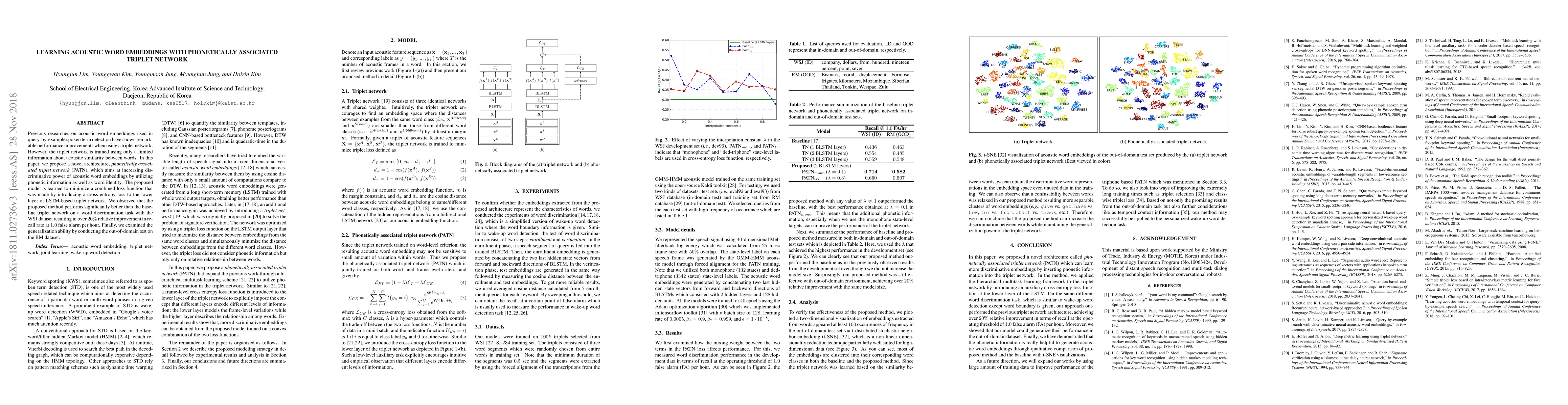 This paper introduces a phonetically associated triplet network (PATN) to enhance acoustic word embeddings for spoken term detection, using phonetic information alongside word identity. The proposed model significantly outperforms the baseline triplet network, achieving a 20% relative improvement in recall rate on the WSJ dataset and demonstrating good generalization on the RM dataset.