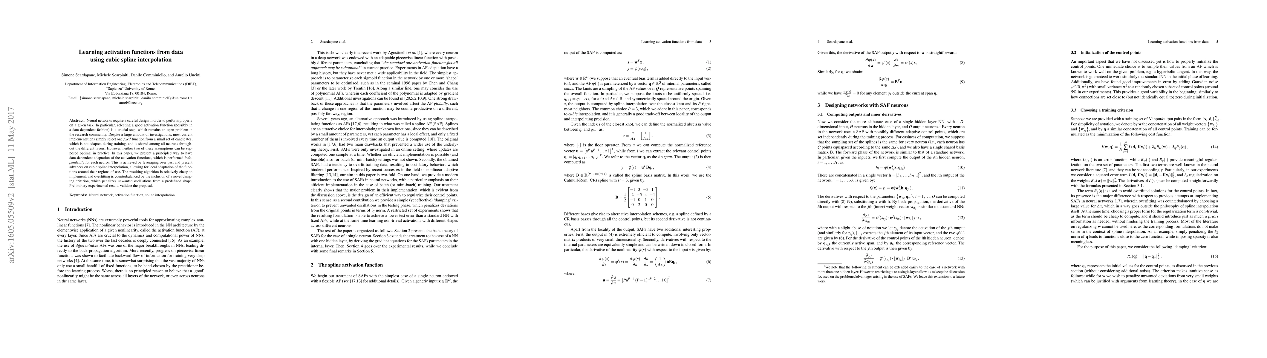 This paper proposes a method for adaptively learning activation functions using cubic spline interpolation, allowing each neuron to have its own data-dependent activation function. The approach includes a damping criterion to prevent overfitting and is validated through experiments on standard benchmarks.