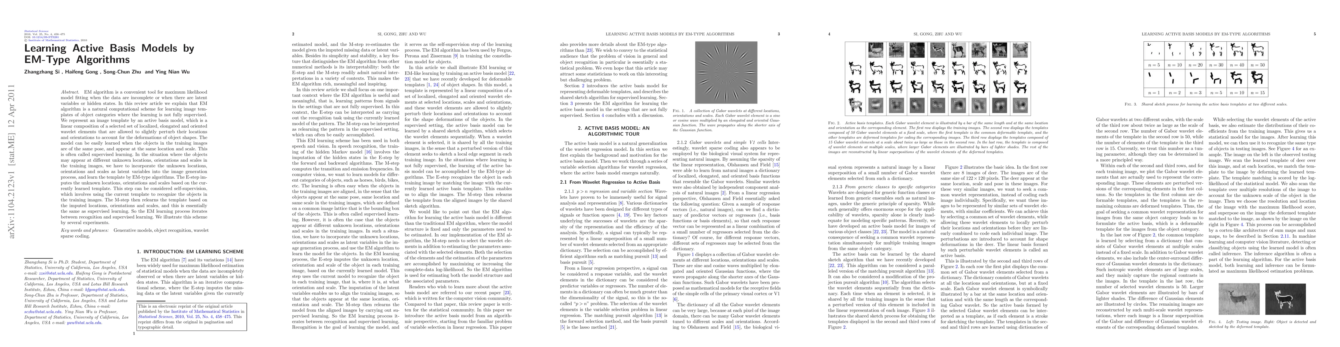 EM algorithm is a convenient tool for maximum likelihood model fitting when the data are incomplete or when there are latent variables or hidden states. In this review article we explain that EM algorithm is a natural computational scheme for learning image templates of object categories where the learning is not fully supervised. We represent an image template by an active basis model, which is a linear composition of a selected set of localized, elongated and oriented wavelet elements that are allowed to slightly perturb their locations and orientations to account for the deformations of object shapes. The model can be easily learned when the objects in the training images are of the same pose, and appear at the same location and scale. This is often called supervised learning. In the situation where the objects may appear at different unknown locations, orientations and scales in the training images, we have to incorporate the unknown locations, orientations and scales as latent variables into the image generation process, and learn the template by EM-type algorithms. The E-step imputes the unknown locations, orientations and scales based on the currently learned template. This step can be considered self-supervision, which involves using the current template to recognize the objects in the training images. The M-step then relearns the template based on the imputed locations, orientations and scales, and this is essentially the same as supervised learning. So the EM learning process iterates between recognition and supervised learning. We illustrate this scheme by several experiments.