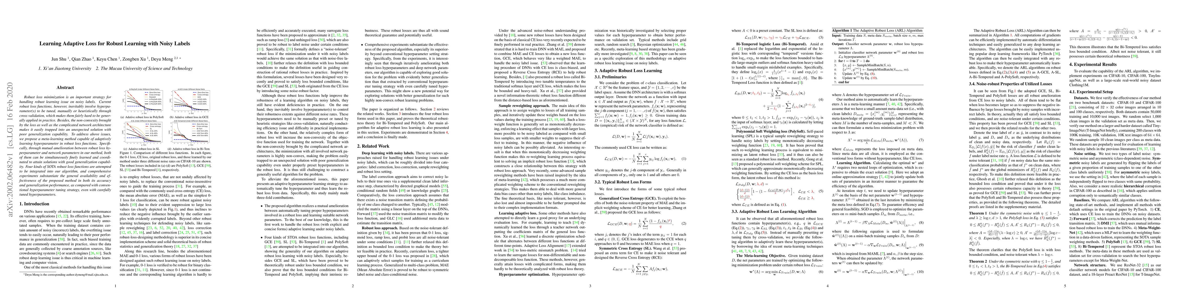 Robust loss minimization is an important strategy for handling robust learning issue on noisy labels. Current robust loss functions, however, inevitably involve hyperparameter(s) to be tuned, manually or heuristically through cross validation, which makes them fairly hard to be generally applied in practice. Besides, the non-convexity brought by the loss as well as the complicated network architecture makes it easily trapped into an unexpected solution with poor generalization capability. To address above issues, we propose a meta-learning method capable of adaptively learning hyperparameter in robust loss functions. Specifically, through mutual amelioration between robust loss hyperparameter and network parameters in our method, both of them can be simultaneously finely learned and coordinated to attain solutions with good generalization capability. Four kinds of SOTA robust loss functions are attempted to be integrated into our algorithm, and comprehensive experiments substantiate the general availability and effectiveness of the proposed method in both its accuracy and generalization performance, as compared with conventional hyperparameter tuning strategy, even with carefully tuned hyperparameters.