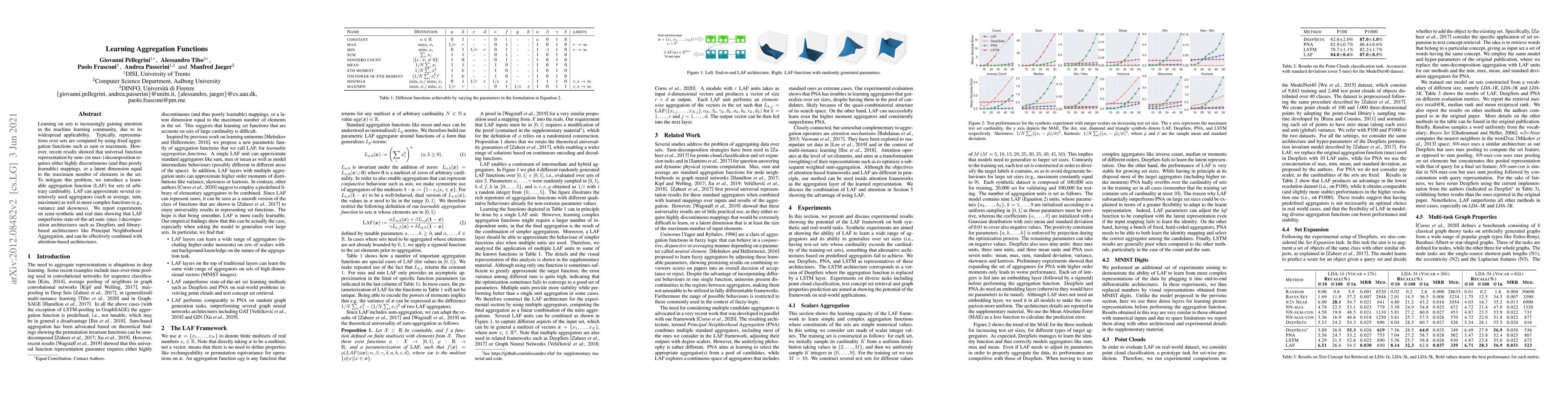 The paper introduces a learnable aggregation function (LAF) for sets of arbitrary cardinality, capable of approximating various aggregators like average, sum, maximum, variance, and skewness. LAF is tested against DeepSets, Principal Neighborhood Aggregation (PNA), and LSTM on semi-synthetic and real data, demonstrating its effectiveness.