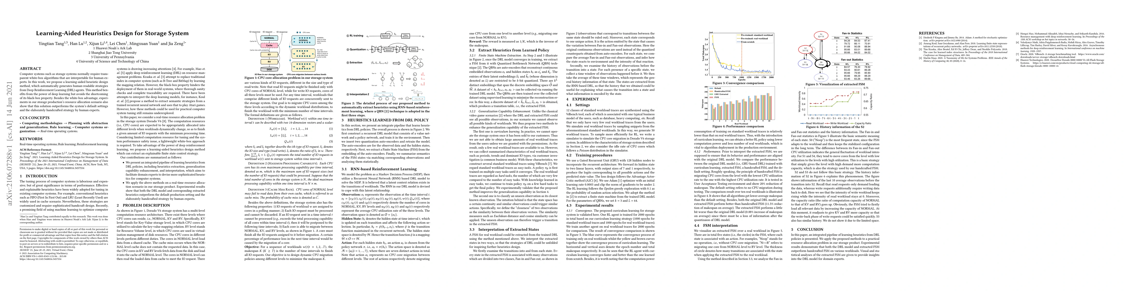Computer systems such as storage systems normally require transparent white-box algorithms that are interpretable for human experts. In this work, we propose a learning-aided heuristic design method, which automatically generates human-readable strategies from Deep Reinforcement Learning (DRL) agents. This method benefits from the power of deep learning but avoids the shortcoming of its black-box property. Besides the white-box advantage, experiments in our storage productions resource allocation scenario also show that this solution outperforms the systems default settings and the elaborately handcrafted strategy by human experts.