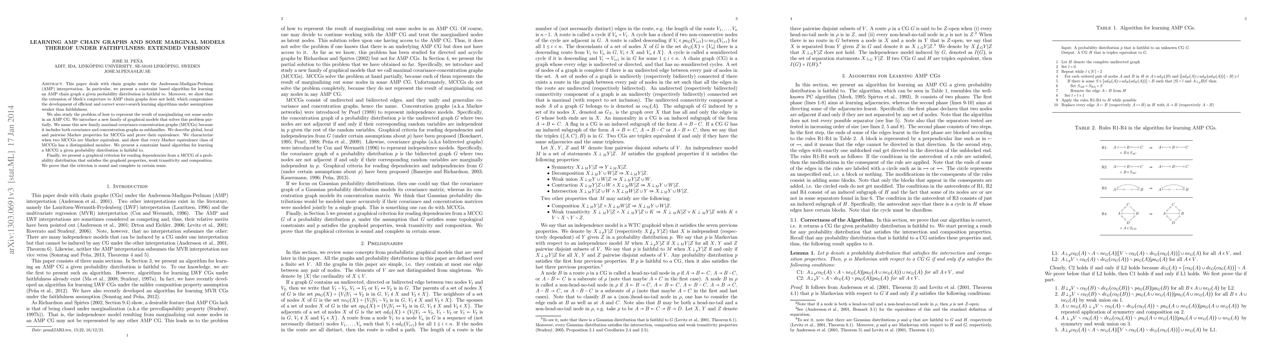 This paper introduces a constraint-based algorithm for learning AMP chain graphs and maximal covariance-concentration graphs (MCCGs) under faithfulness, showing that these models can capture complex dependencies in probability distributions.