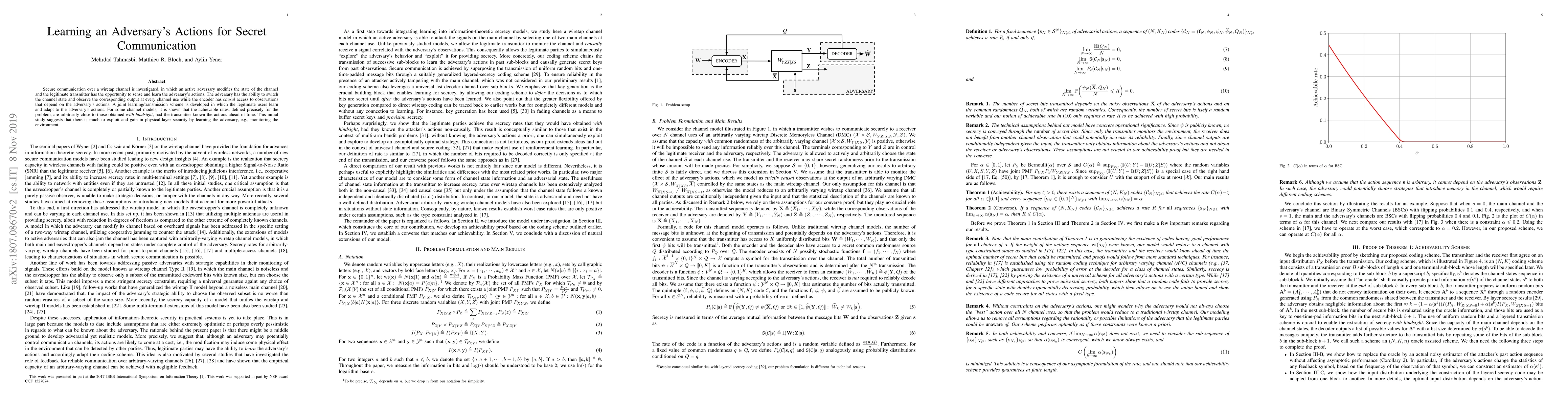 Secure communication over a wiretap channel is investigated, in which an active adversary modifies the state of the channel and the legitimate transmitter has the opportunity to sense and learn the adversary's actions. The adversary has the ability to switch the channel state and observe the corresponding output at every channel use while the encoder has causal access to observations that depend on the adversary's actions. A joint learning/transmission scheme is developed in which the legitimate users learn and adapt to the adversary's actions. For some channel models, it is shown that the achievable rates, defined precisely for the problem, are arbitrarily close to those obtained with hindsight, had the transmitter known the actions ahead of time. This initial study suggests that there is much to exploit and gain in physical-layer security by learning the adversary, e.g., monitoring the environment.