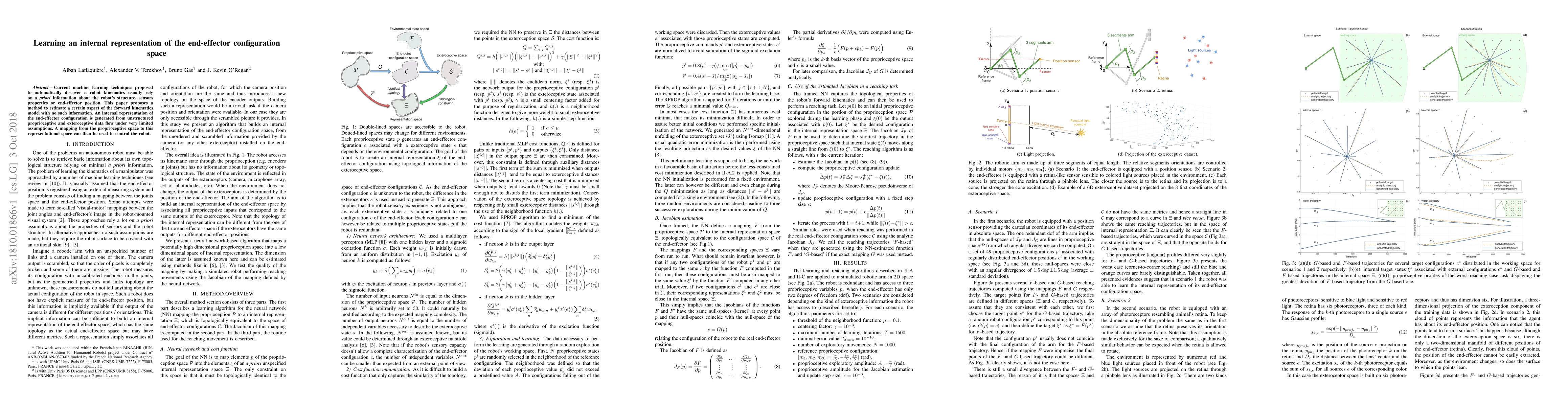 Current machine learning techniques proposed to automatically discover a robot kinematics usually rely on a priori information about the robot's structure, sensors properties or end-effector position. This paper proposes a method to estimate a certain aspect of the forward kinematics model with no such information. An internal representation of the end-effector configuration is generated from unstructured proprioceptive and exteroceptive data flow under very limited assumptions. A mapping from the proprioceptive space to this representational space can then be used to control the robot.