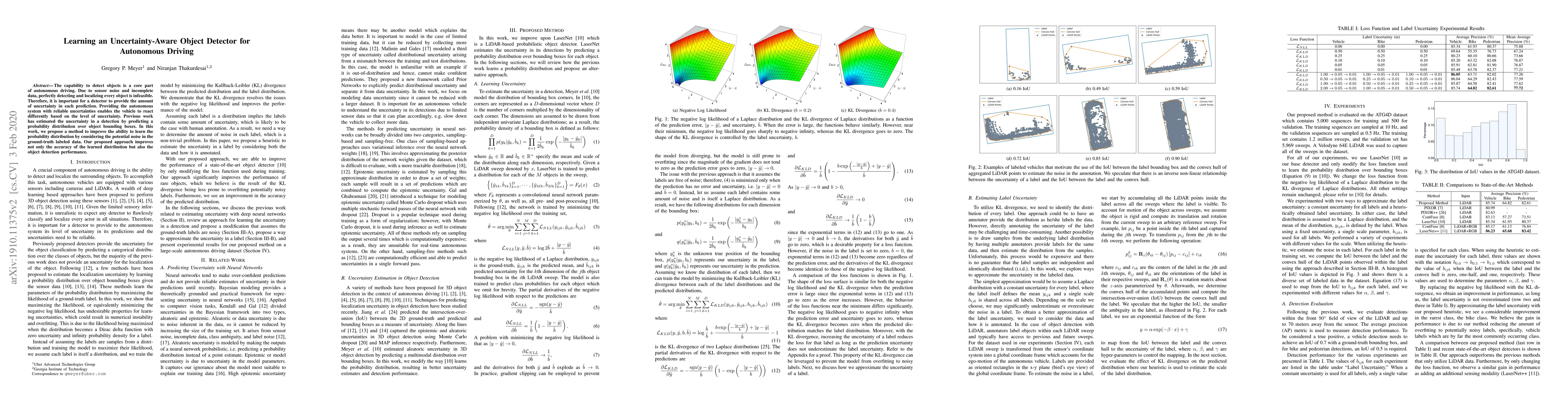This paper proposes a method to enhance an object detector's ability to estimate uncertainty in autonomous driving by considering the noise in ground-truth data. The improved uncertainty estimation enhances both the accuracy of the learned probability distribution and the overall object detection performance.