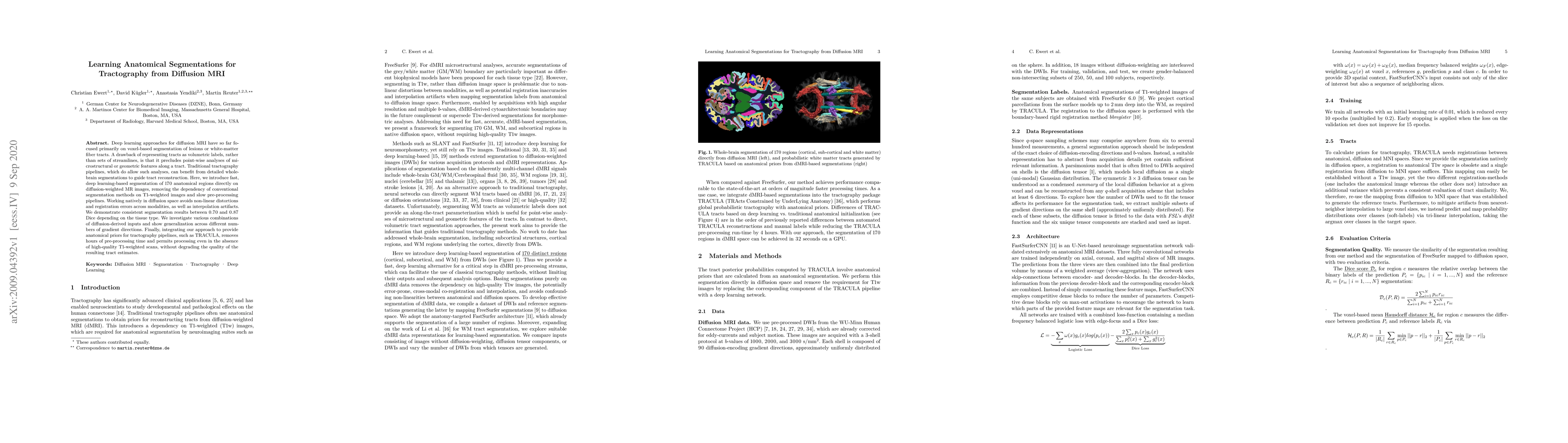 This paper introduces a deep learning method for segmenting 170 anatomical regions directly from diffusion-weighted MRI, eliminating the need for T1-weighted images and reducing pre-processing time. The approach provides anatomical priors for tractography, improving microstructural analysis and enhancing tract reconstruction accuracy.