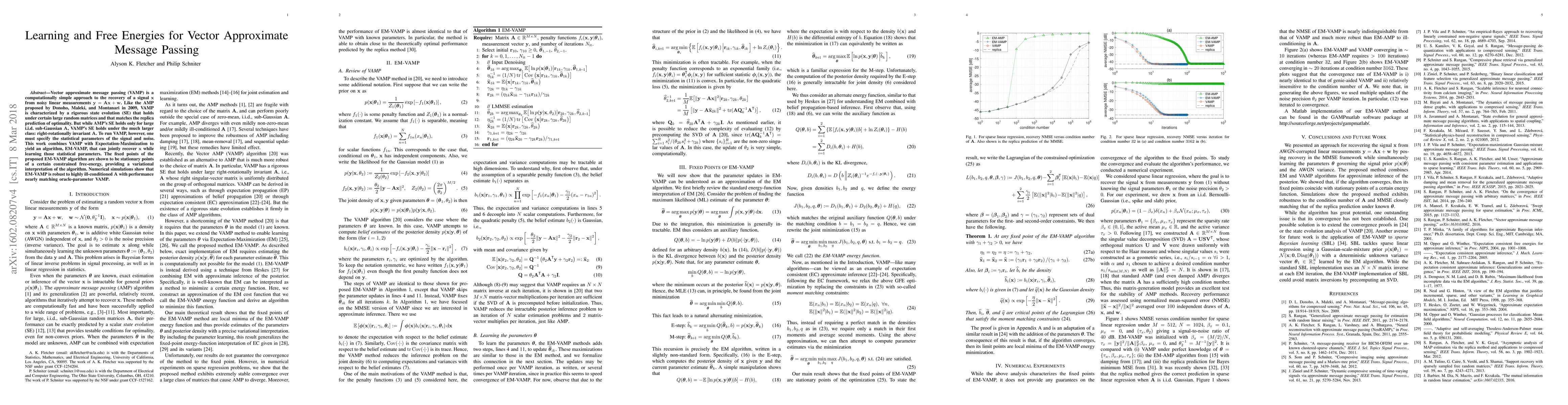 The research paper introduces EM-VAMP, an algorithm that combines Vector Approximate Message Passing with Expectation-Maximization to jointly recover a signal from noisy linear measurements while learning its statistical parameters.