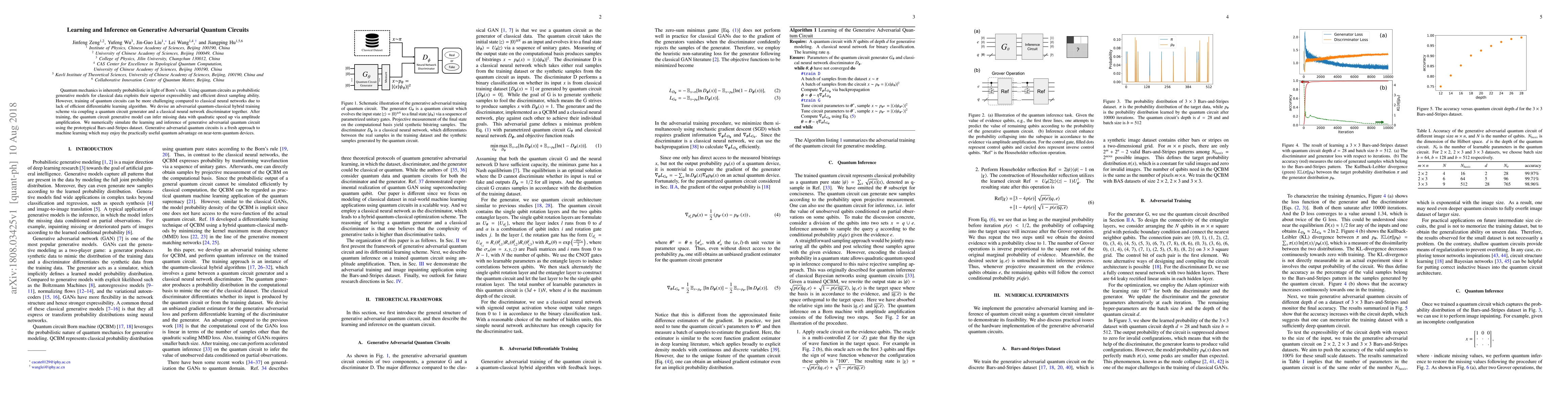 The paper presents a hybrid quantum-classical adversarial training scheme for quantum circuits, enabling efficient learning and inference for classical data modeling, along with a practical implementation using a quantum circuits simulator.