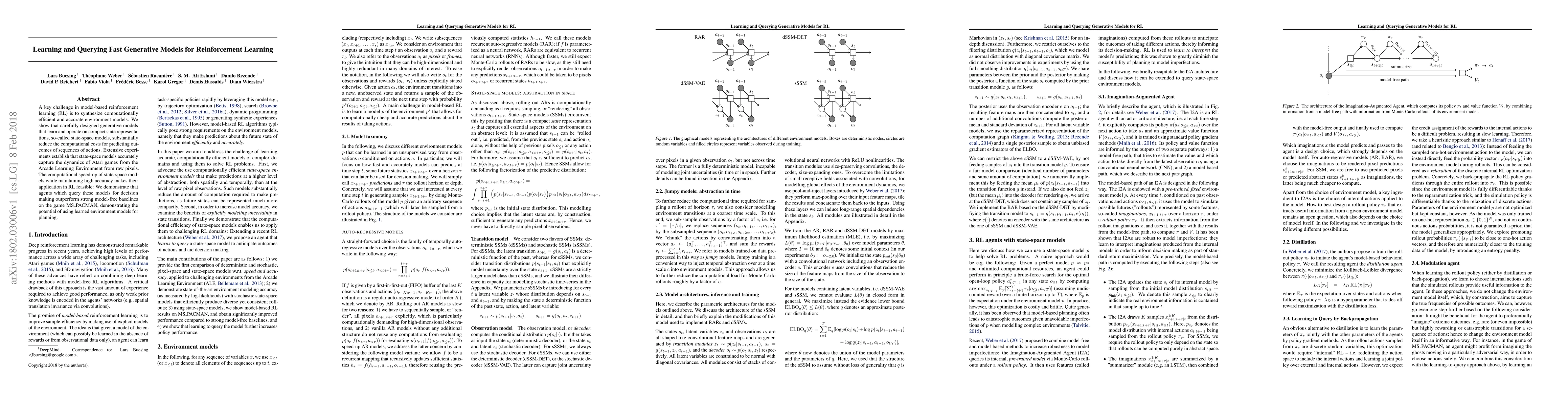 A key challenge in model-based reinforcement learning (RL) is to synthesize computationally efficient and accurate environment models. We show that carefully designed generative models that learn and operate on compact state representations, so-called state-space models, substantially reduce the computational costs for predicting outcomes of sequences of actions. Extensive experiments establish that state-space models accurately capture the dynamics of Atari games from the Arcade Learning Environment from raw pixels. The computational speed-up of state-space models while maintaining high accuracy makes their application in RL feasible: We demonstrate that agents which query these models for decision making outperform strong model-free baselines on the game MSPACMAN, demonstrating the potential of using learned environment models for planning.