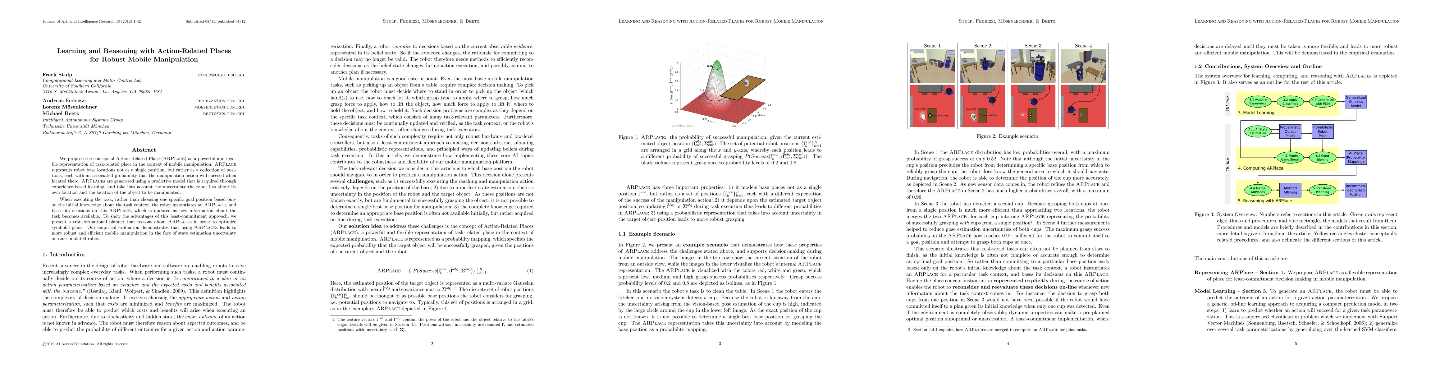 We propose the concept of Action-Related Place (ARPlace) as a powerful and flexible representation of task-related place in the context of mobile manipulation. ARPlace represents robot base locations not as a single position, but rather as a collection of positions, each with an associated probability that the manipulation action will succeed when located there. ARPlaces are generated using a predictive model that is acquired through experience-based learning, and take into account the uncertainty the robot has about its own location and the location of the object to be manipulated. When executing the task, rather than choosing one specific goal position based only on the initial knowledge about the task context, the robot instantiates an ARPlace, and bases its decisions on this ARPlace, which is updated as new information about the task becomes available. To show the advantages of this least-commitment approach, we present a transformational planner that reasons about ARPlaces in order to optimize symbolic plans. Our empirical evaluation demonstrates that using ARPlaces leads to more robust and efficient mobile manipulation in the face of state estimation uncertainty on our simulated robot.