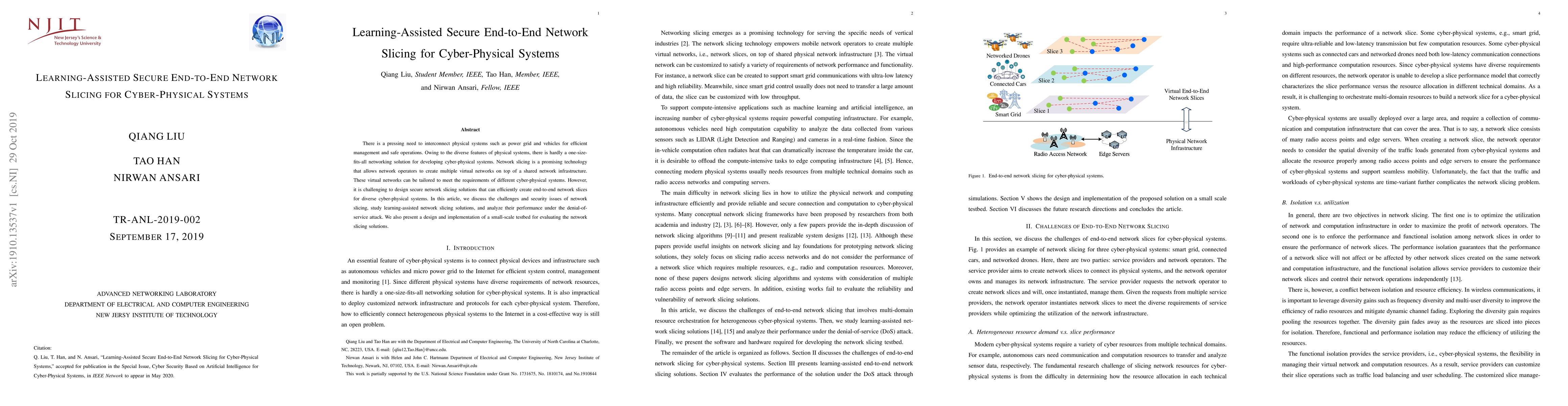 This paper explores the challenges of secure network slicing for diverse cyber-physical systems, proposing learning-assisted solutions to create tailored virtual networks. It evaluates these solutions' performance against denial-of-service attacks and demonstrates a small-scale testbed for practical assessment.