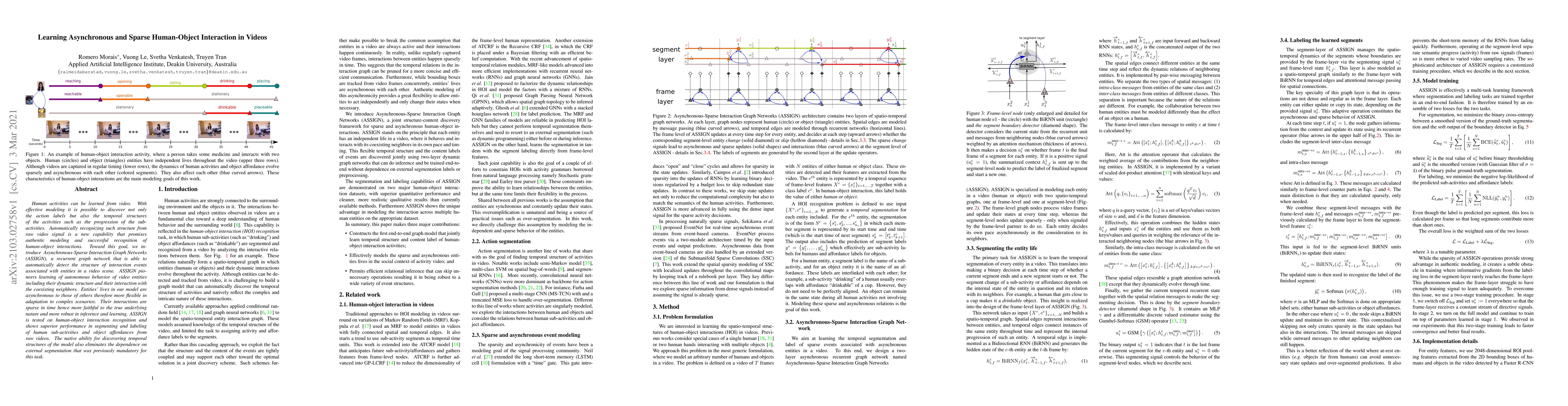 This paper introduces Asynchronous-Sparse Interaction Graph Networks (ASSIGN), a recurrent graph network for recognizing human-object interactions in videos. ASSIGN excels in detecting the temporal structure of interactions, offering superior performance without requiring external segmentation.