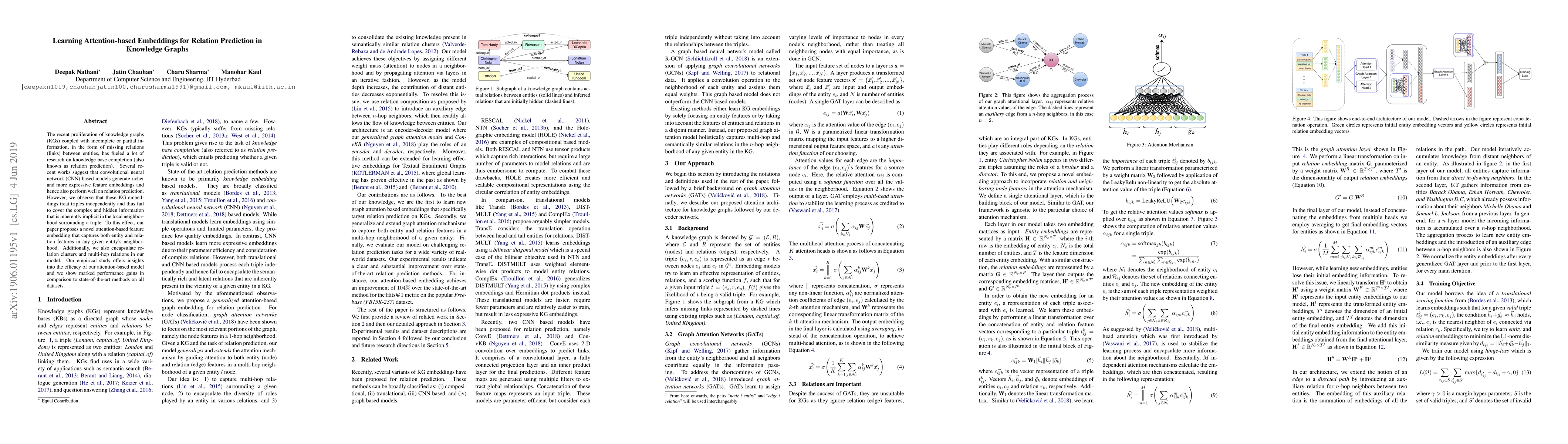 This paper proposes an attention-based embedding model to enhance relation prediction in knowledge graphs by capturing local neighborhood information and relation clusters. Empirical results show significant performance improvements over existing state-of-the-art methods.