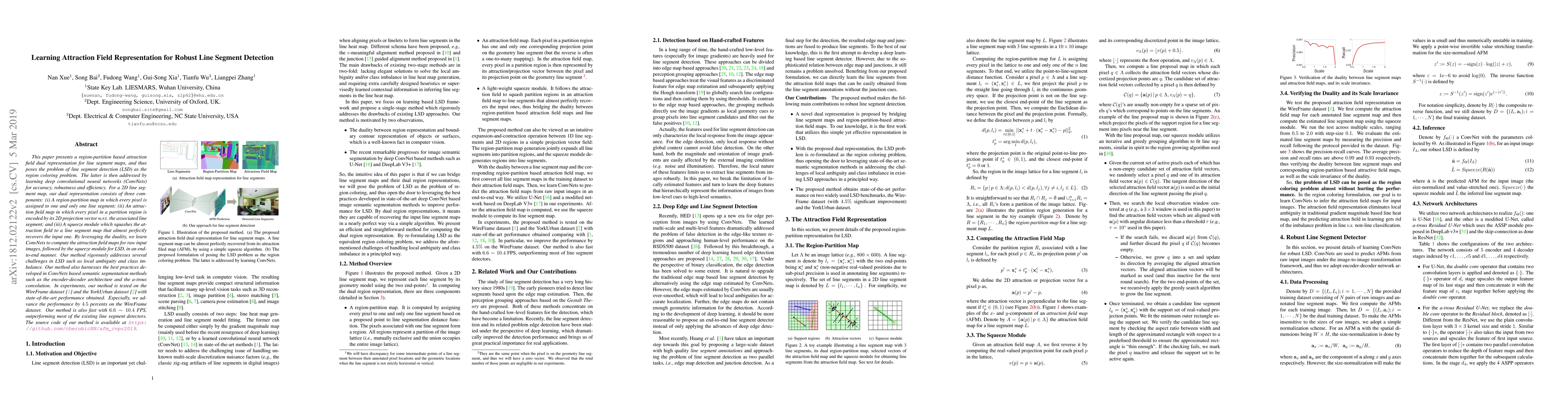 This paper proposes a region-partition based attraction field representation for robust line segment detection, framing it as a region coloring problem solved by deep ConvNets. The method achieves state-of-the-art performance on WireFrame and YorkUrban datasets, improving accuracy by 4.5% and offering fast detection speeds of 6.6~10.4 FPS.