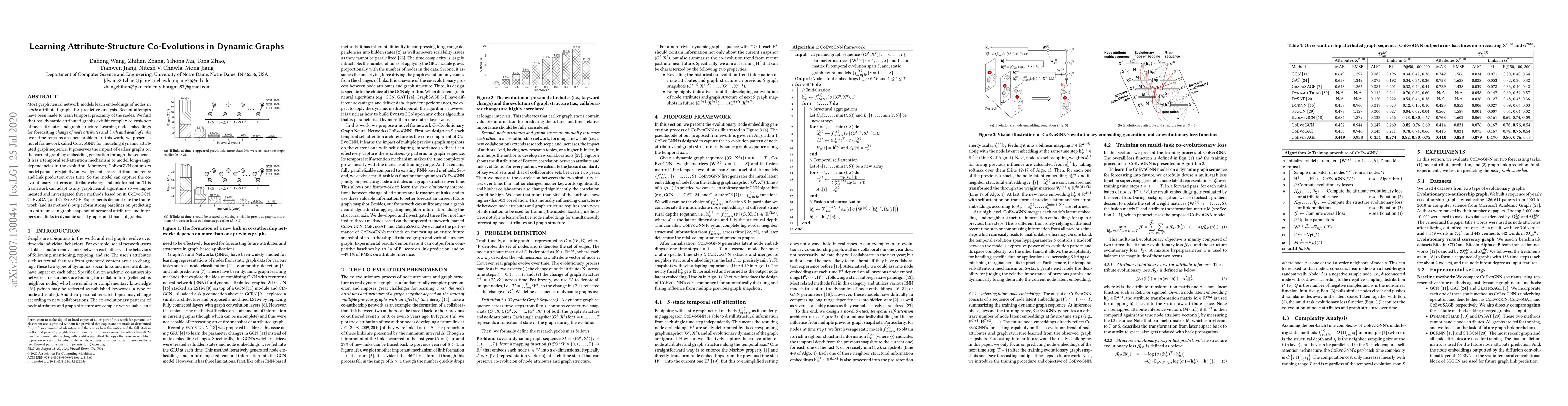 This paper introduces CoEvoGNN, a framework for modeling dynamic attributed graphs that captures the co-evolution of node attributes and graph structure over time. It employs temporal self-attention and jointly optimizes attribute inference and link prediction tasks, outperforming baselines on dynamic social and financial graphs.