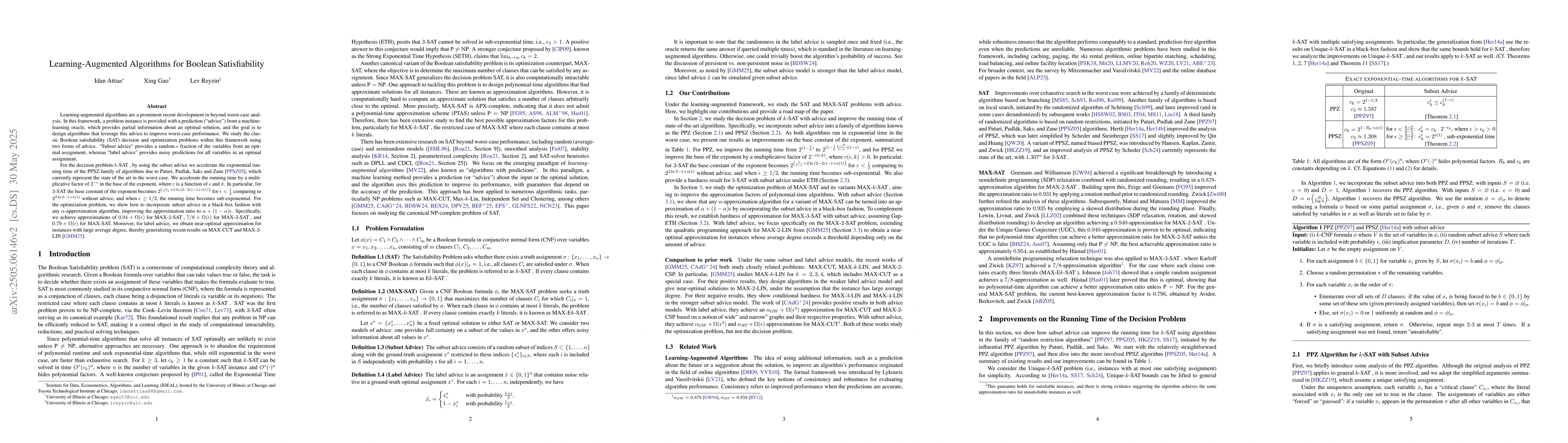 The paper presents novel ways to integrate machine learning advice (subset and label) into learning-augmented algorithms for Boolean satisfiability problems, leading to significant performance improvements.