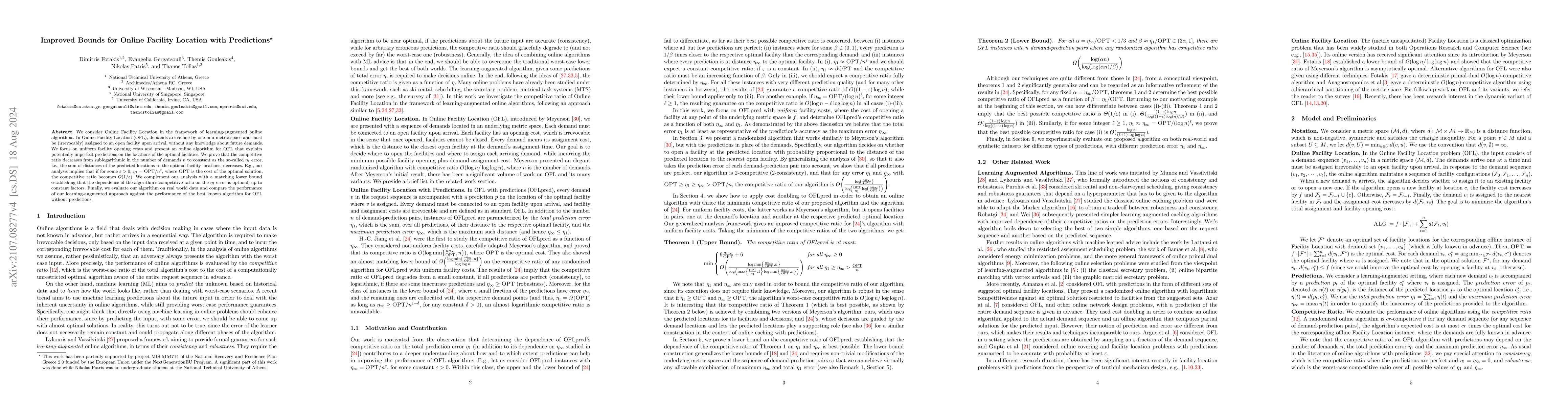 This paper proposes an online algorithm for the Online Facility Location problem, leveraging imperfect predictions to improve competitive ratios. The algorithm's performance improves as prediction accuracy increases, and the authors prove that this dependence is optimal, supported by a matching lower bound.