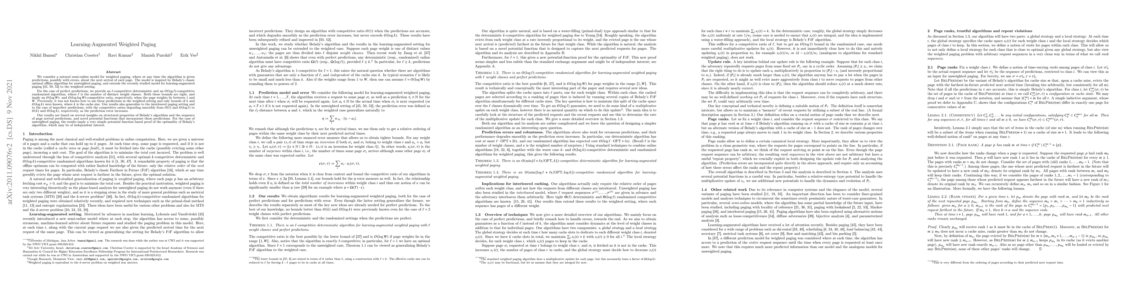 The work extends learning-augmented paging to the weighted setting, providing tight bounds and insights into Belady's algorithm's optimality, which were previously unknown in the weighted context.