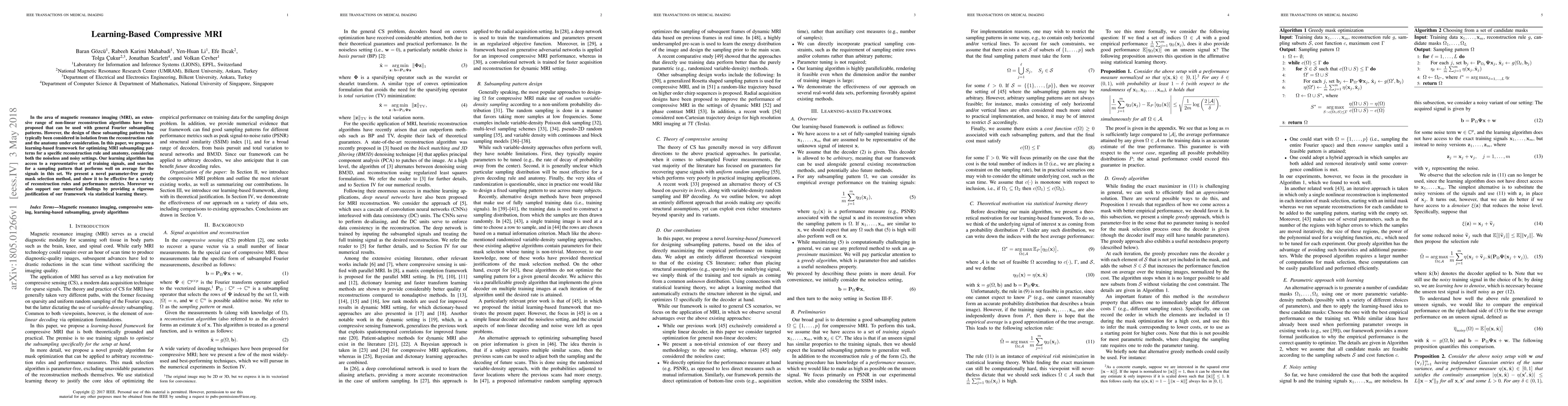 A learning-based framework optimizes MRI subsampling patterns for specific reconstruction rules and anatomy, outperforming existing methods with a novel parameter-free greedy mask selection method.