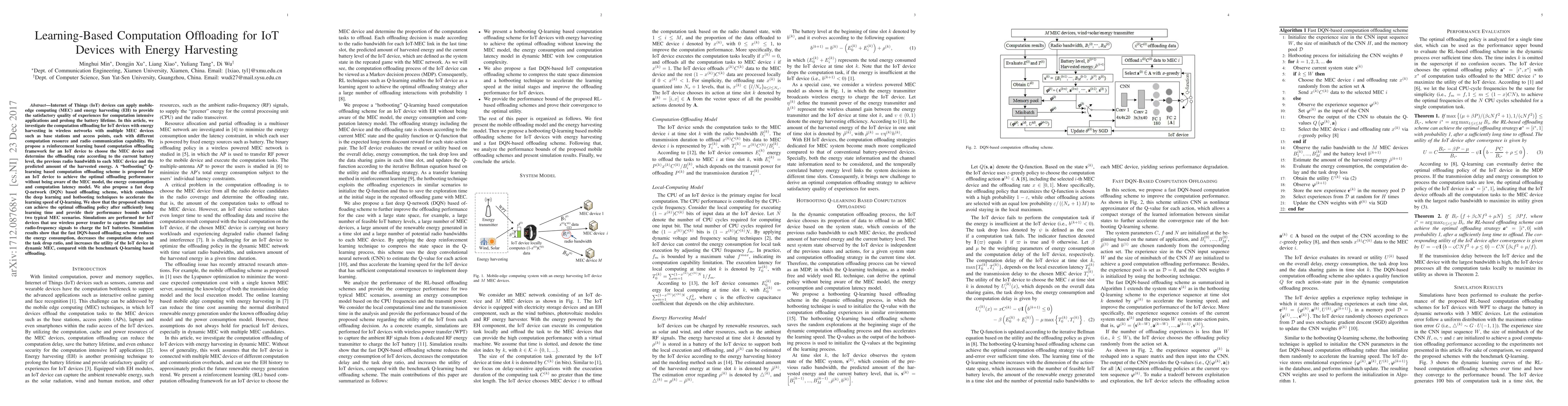 This paper proposes reinforcement learning-based frameworks for computation offloading in IoT devices utilizing energy harvesting and mobile-edge computing. The study introduces a "hotbooting" Q-learning scheme and a fast deep Q-network (DQN) approach for optimizing offloading decisions, demonstrating improved energy efficiency, reduced computation delay, and enhanced utility compared to traditional Q-learning.