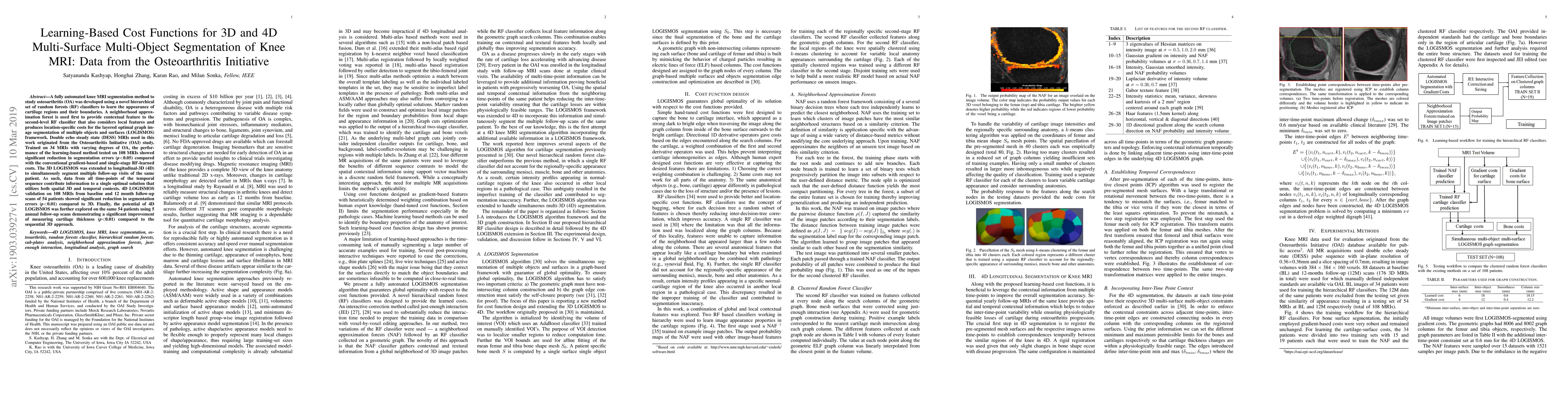 This paper presents a fully automated method for knee MRI segmentation using a hierarchical set of random forests to learn cartilage region features, significantly reducing segmentation errors compared to conventional methods. The study extends 3D segmentation to 4D, leveraging longitudinal data to improve cartilage thickness measurements over time.