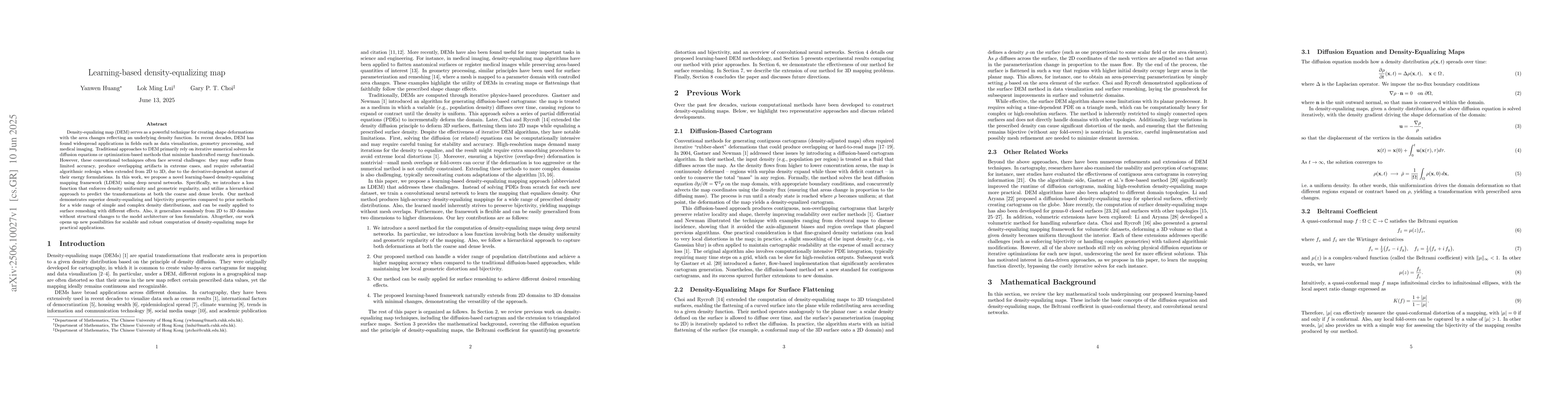 A novel approach combining diffusion-based methods with machine learning techniques to produce density-equalizing maps for various surfaces.