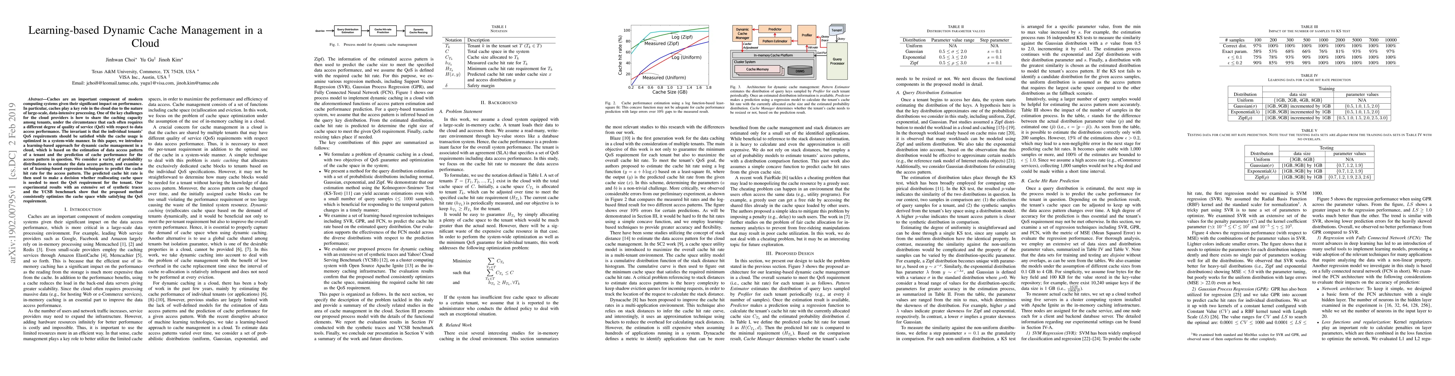 A learning-based approach to dynamic cache management in a cloud optimizes cache space while satisfying quality of service requirements for individual tenants. The proposed method consistently outperforms others in synthetic traces and benchmark tests.